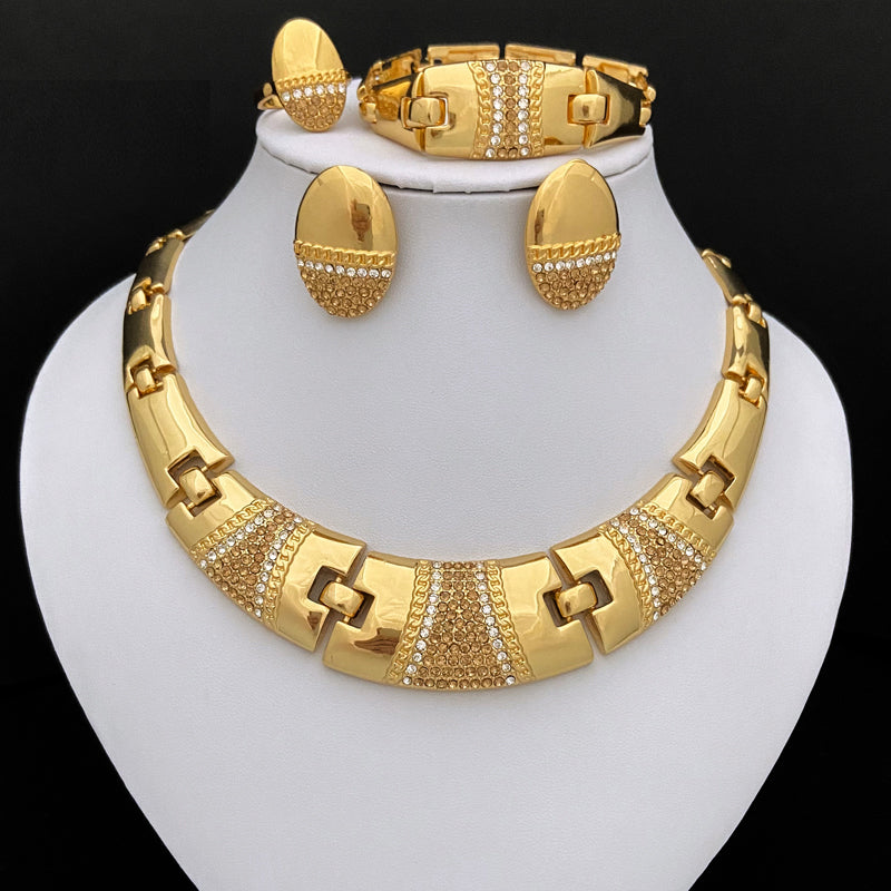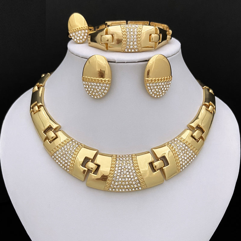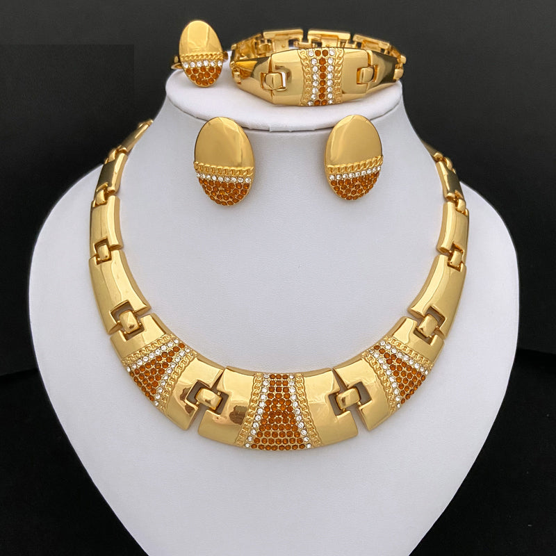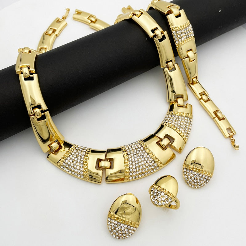 Afraic Jewelry -Jewelry Sets For Women Fashion Dubai Jewelry Necklace Set With Rhinestones Wedding Party Gift
