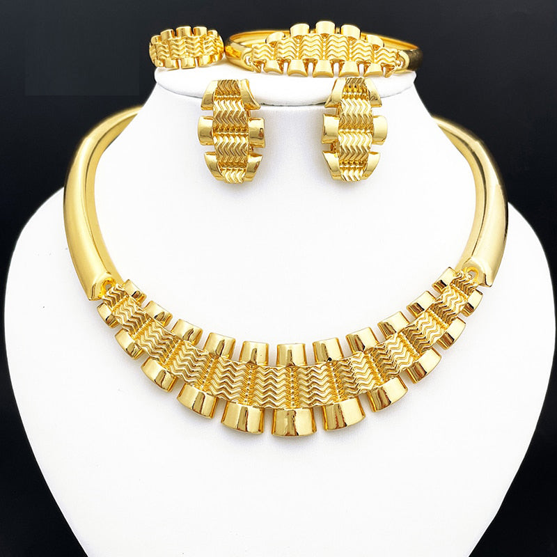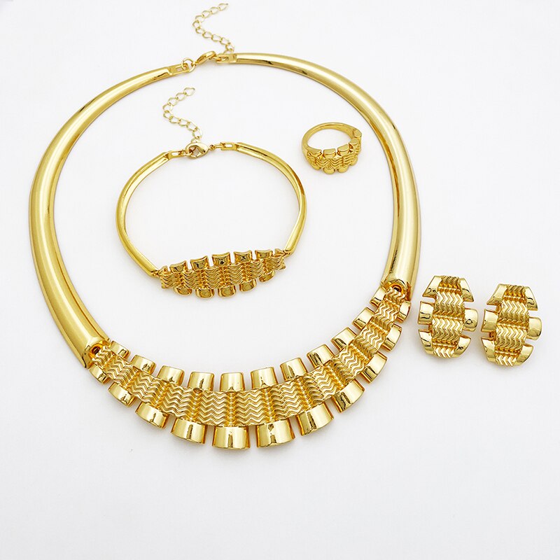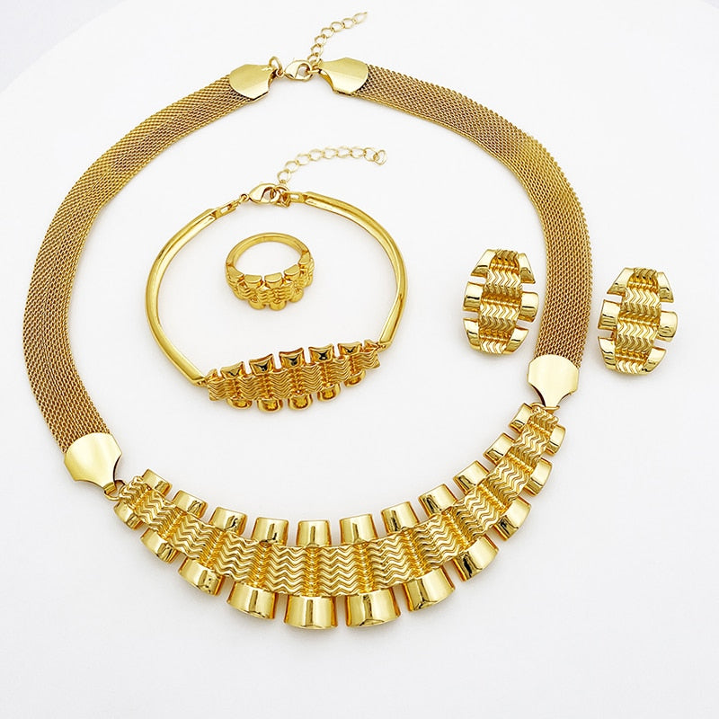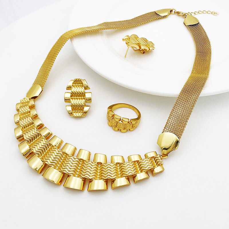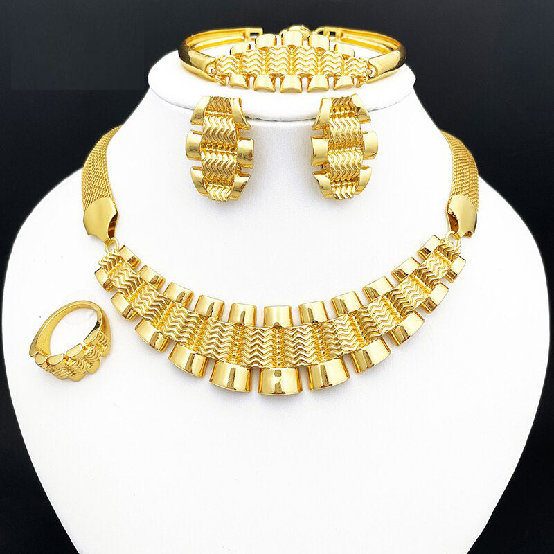 Dubai Jewelry Woman Set Gold Plate Necklaces For Women Wedding Banquet Party 4 Piece Jewelry Large Set