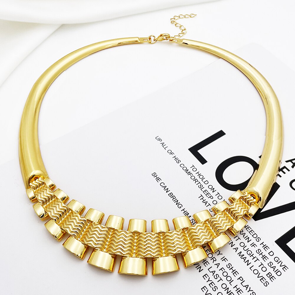 Afraic Jewelry-Gold Plated Jewelry Set Woman Necklace Earrings Wedding Banquet Party Jewelry Large Set