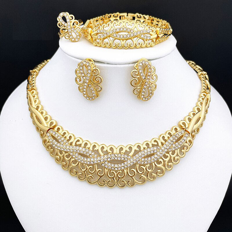 Afraic Jewelry-Gold Plated Jewelry Set Women Necklace And Earrings