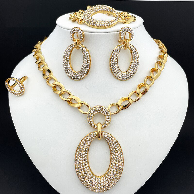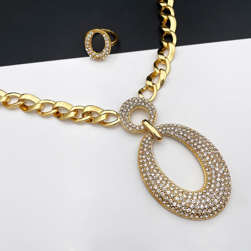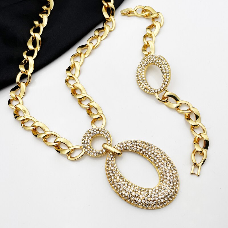 Gold Plated Jewelry Sets Women's Necklace Earrings Large Pendant conjunto de joyas de moda