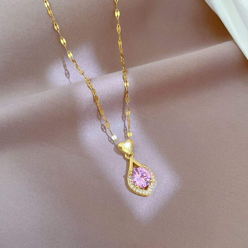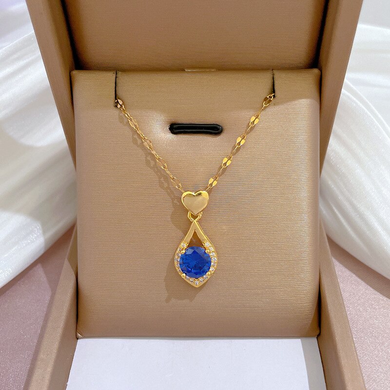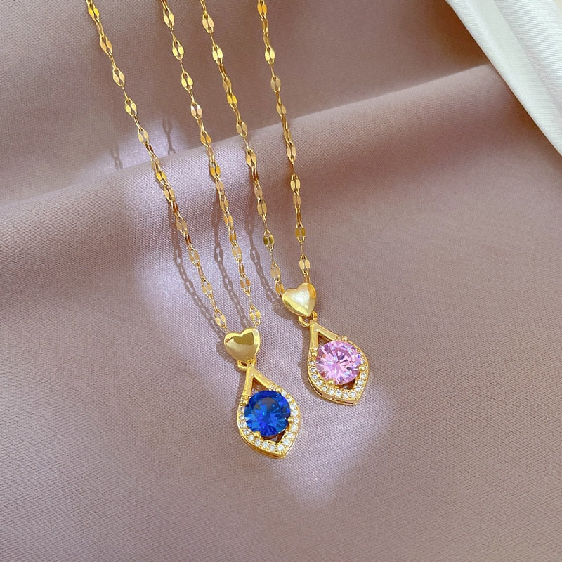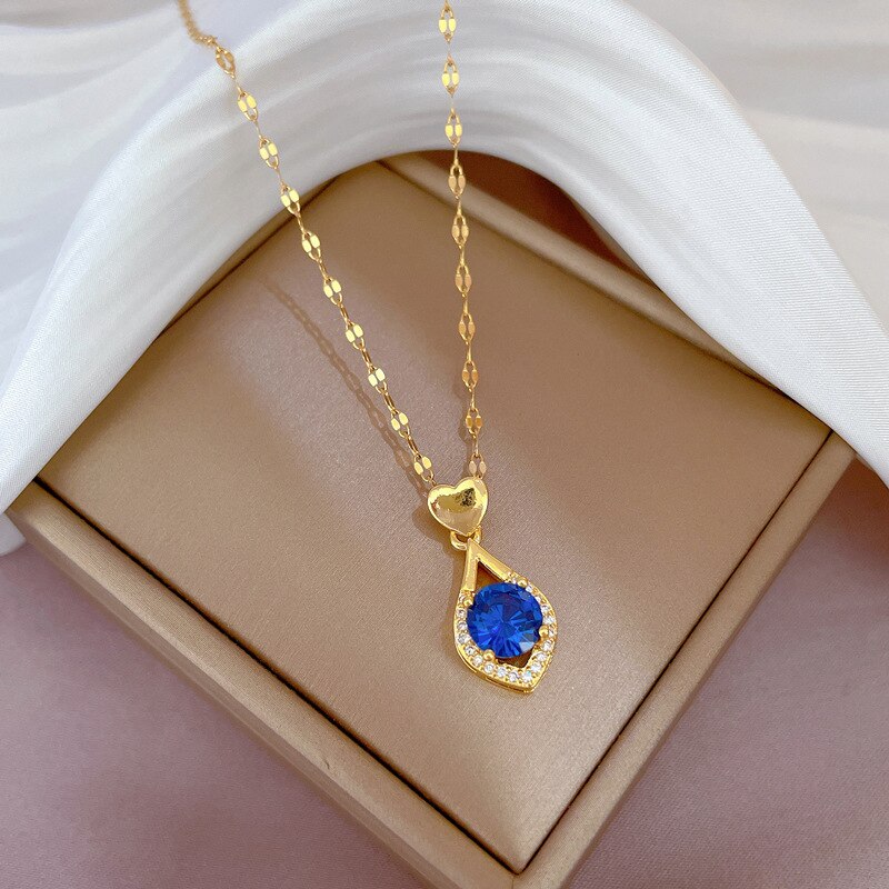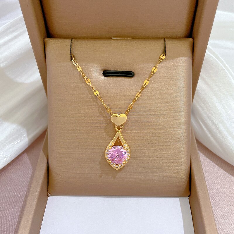 585 Gold Jewelry-Stainless Steel Gold Plated Korean Crystal Water Drop Pendant Necklace Women Creative High Quality Birthday Gift Jewelry