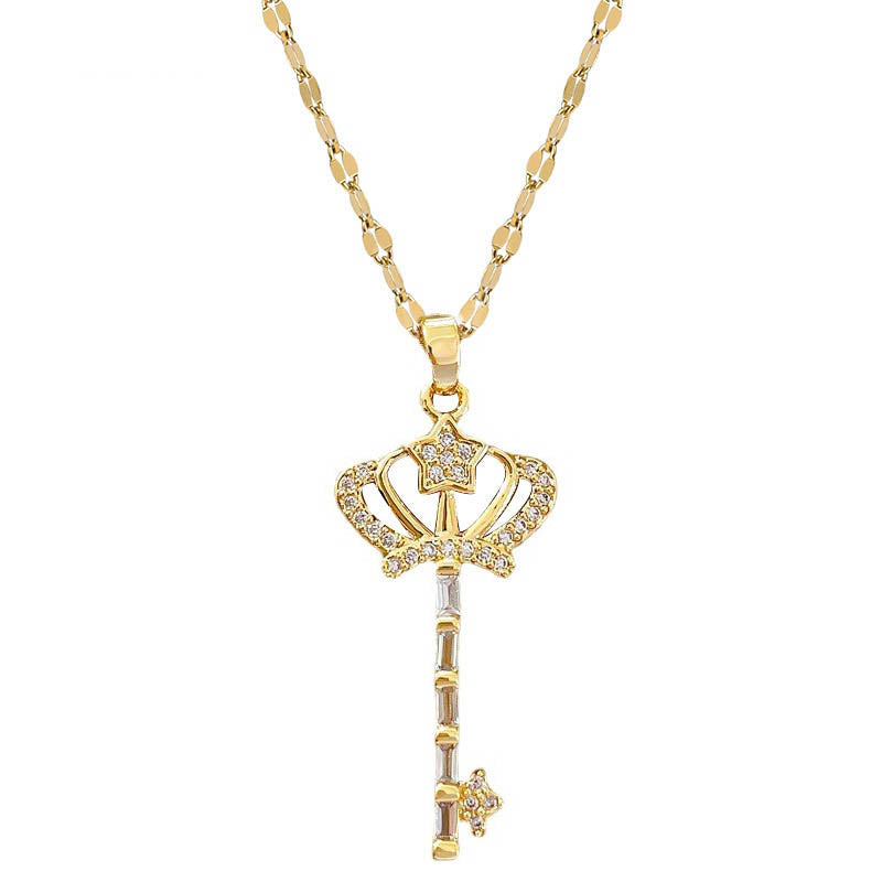 585 Gold Jewelry-316L Stainless Steel Gold Plated Korean FashionCrown key Pendant Necklaces For Women Cute Romantic Female Wedding Jewelry