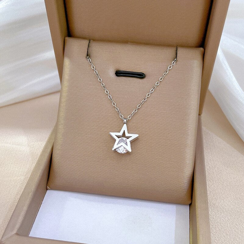 585 Gold Jewelry-316L Stainless Steel Gold Plated Korean Romantic Star Pendant Neckalce For Women Girls Birthday Fashion Jewelry