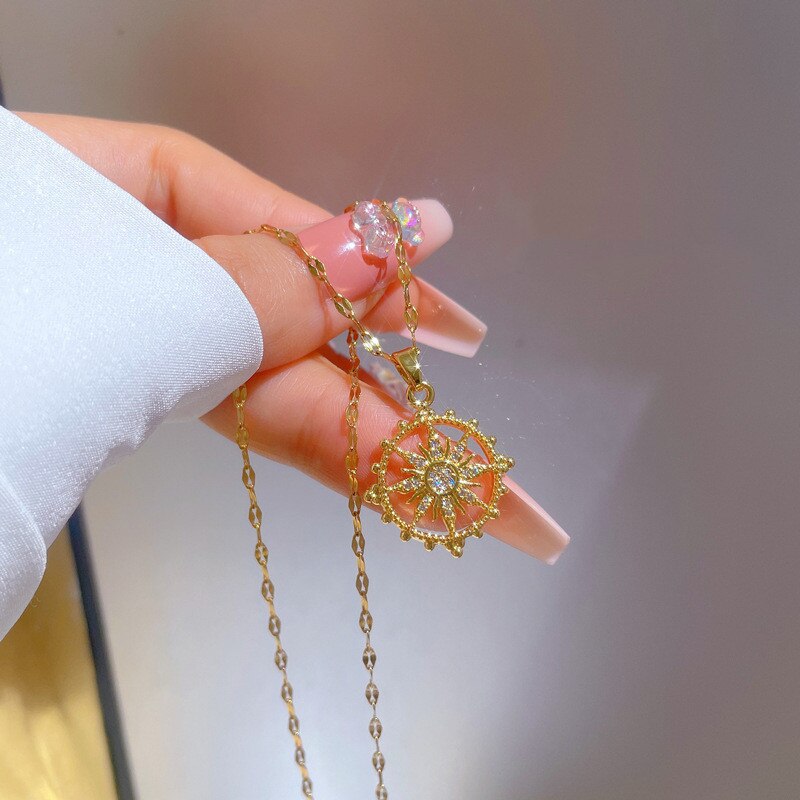 585 Gold Jewelry-316L Stainless Steel Gold Plated Light Luxury Micro-set Zircon The Light Of The Sun Disc Pendant Necklace For Women