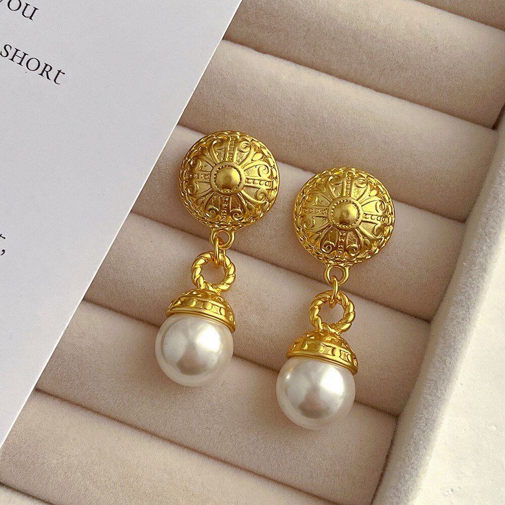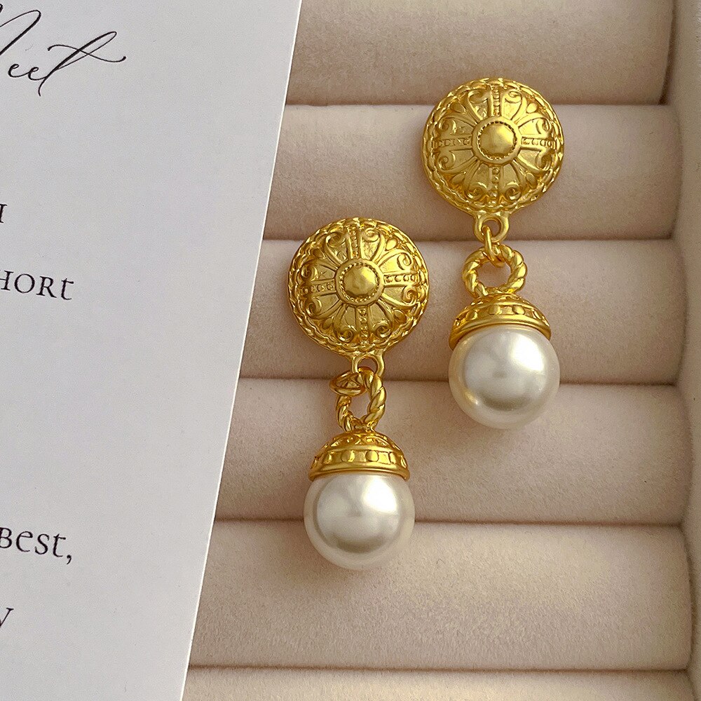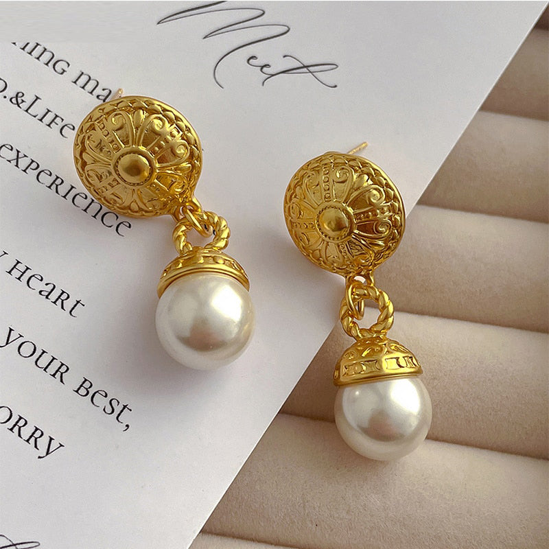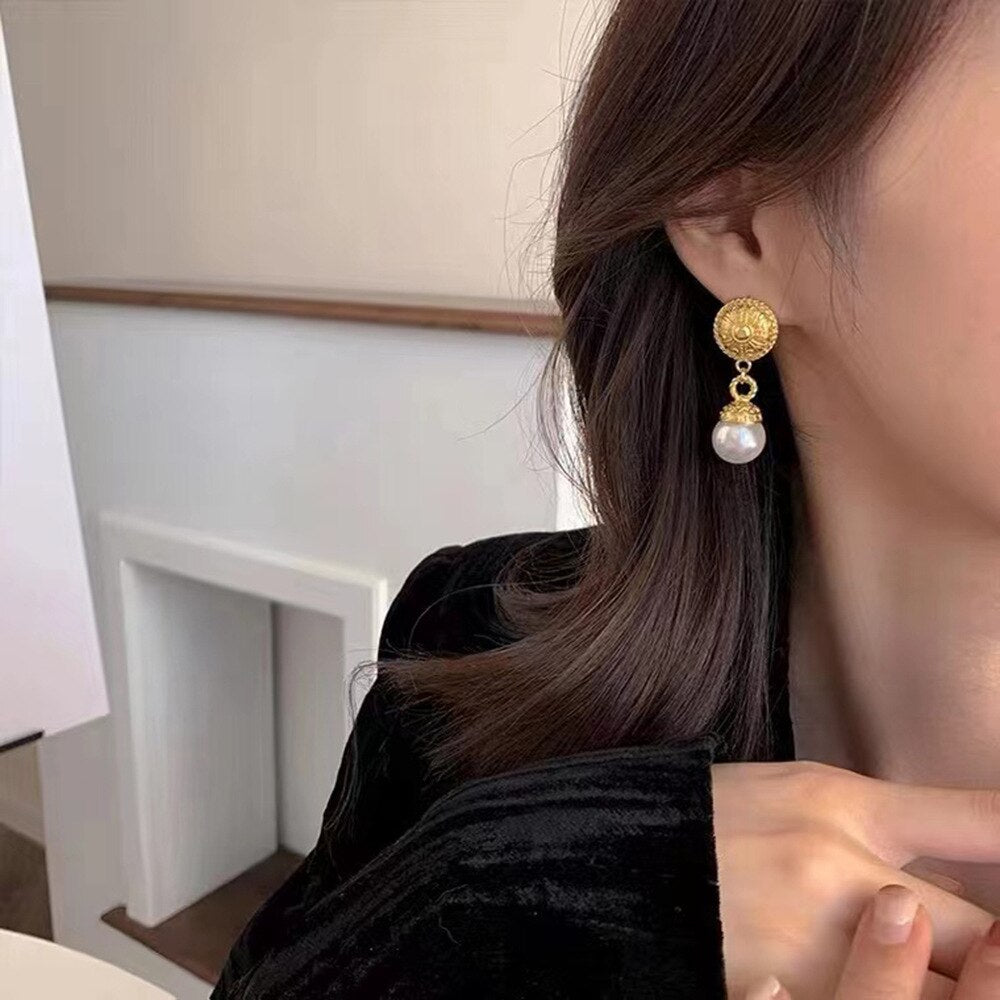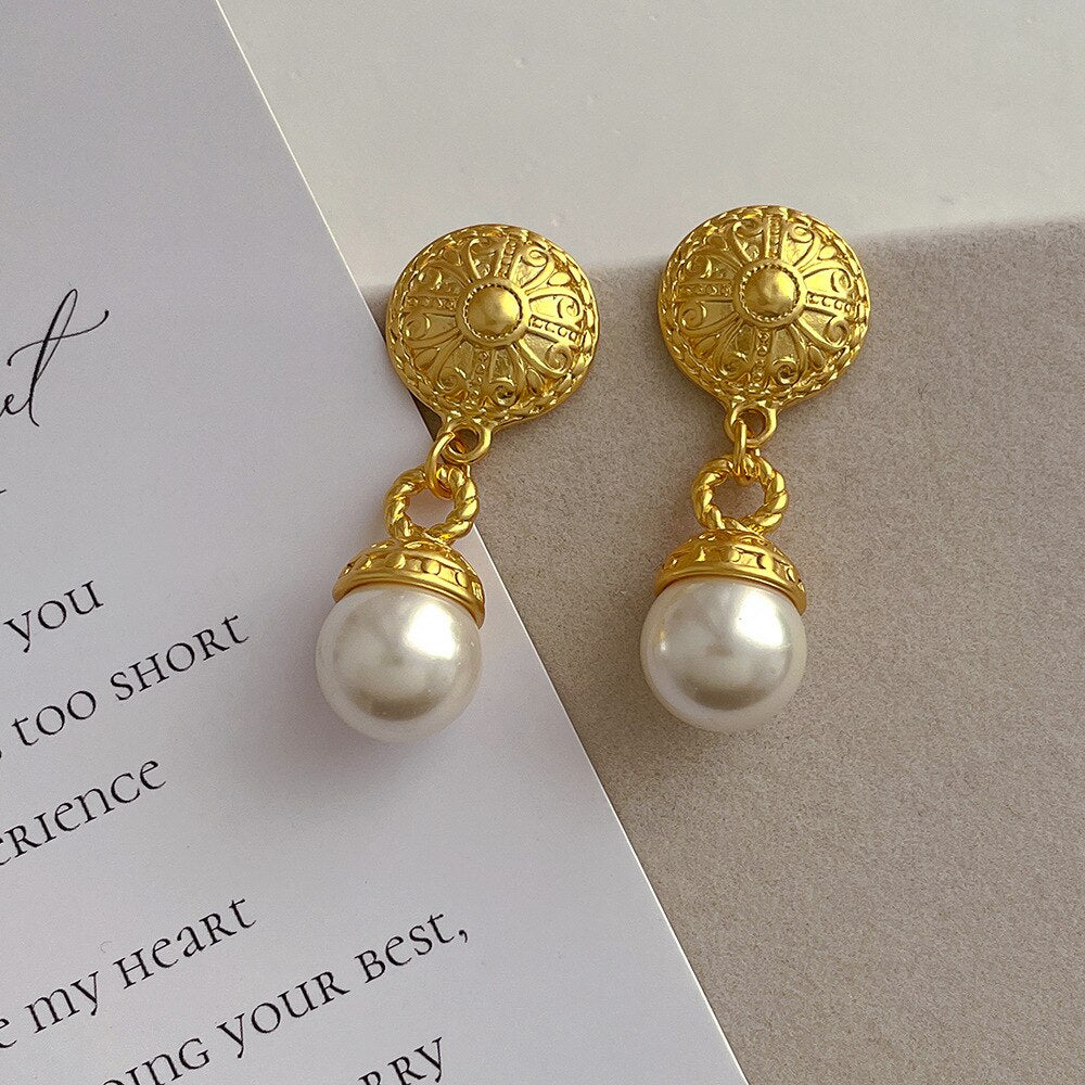 585 Gold Jewelry-316L Stainless Steel Gold Plated Natural Seashell Korean Stud Earrings For Women Party Wedding Luxury Jewelry