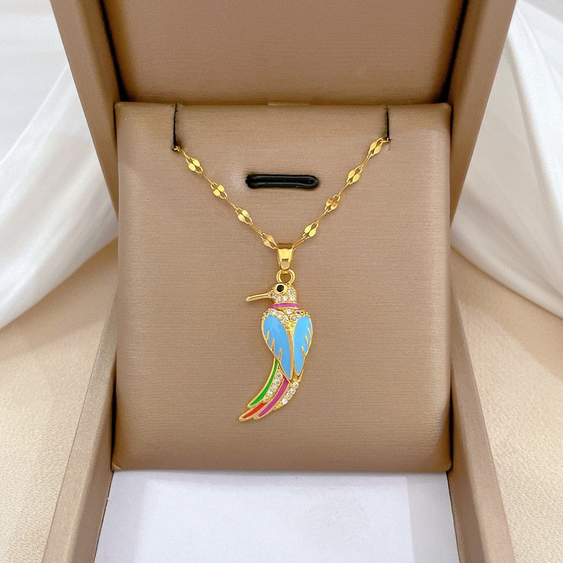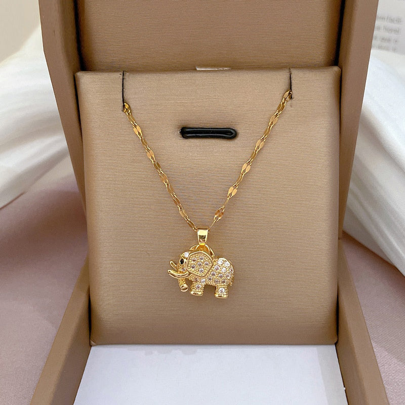 585 Gold Jewelry-316L Stainless Steel Gold Plated Niche Design Animal Elephant Pendant Girl Necklace Exquisite Clavicle Chain Sweet Jewelry