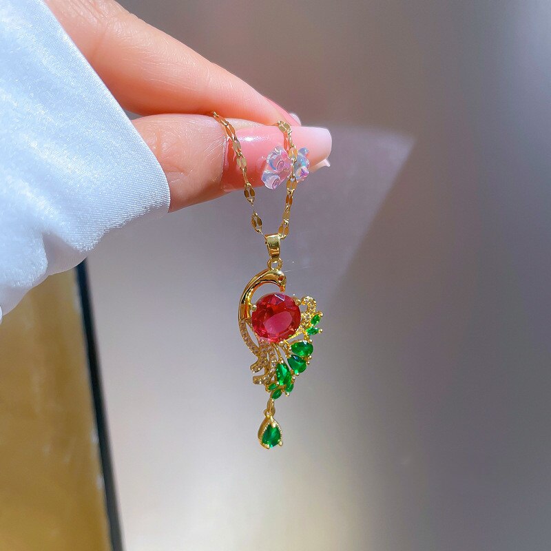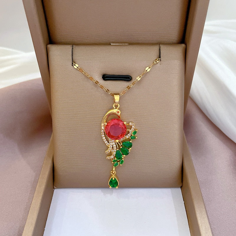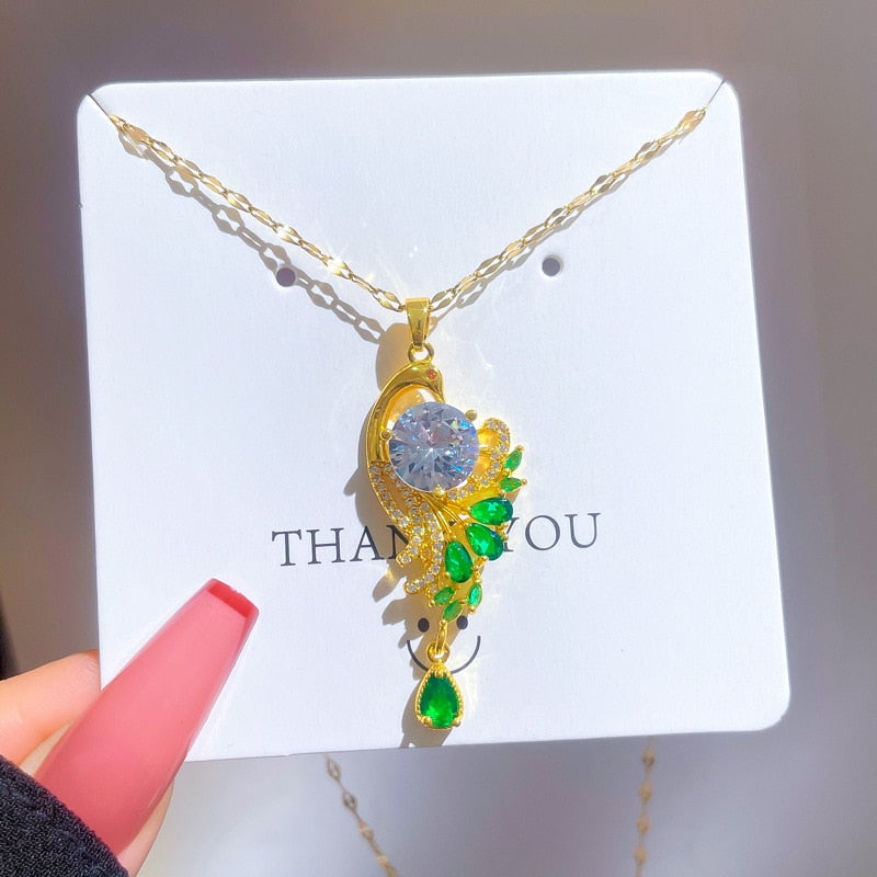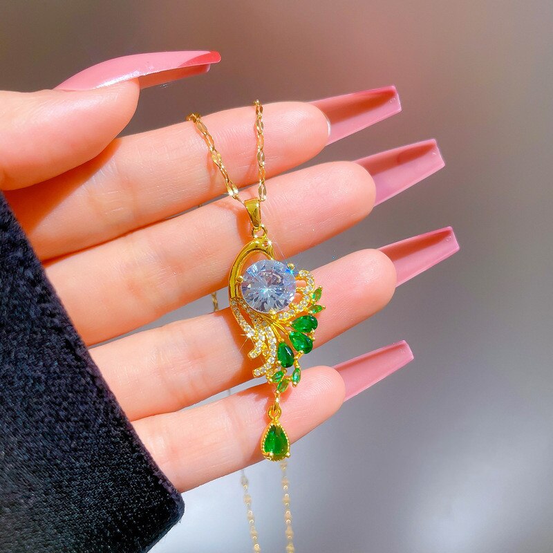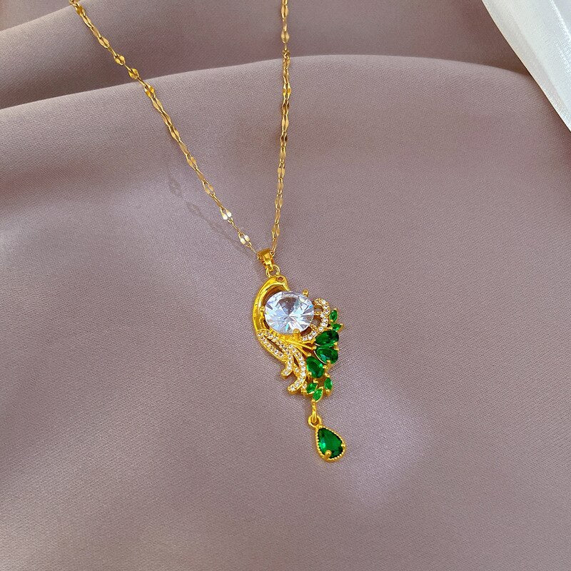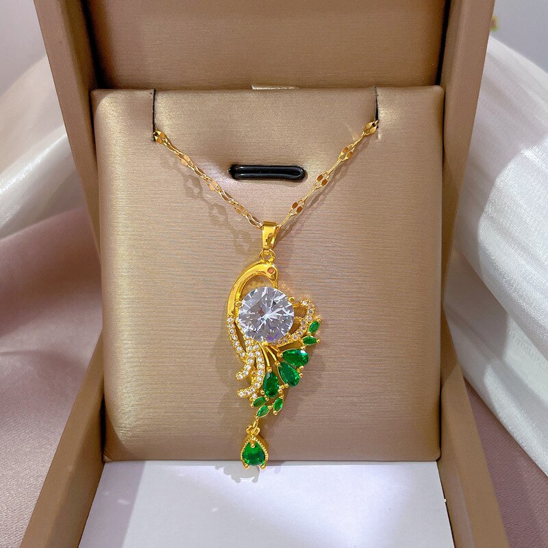 585 Gold Jewelry-Stainless Steel Gold Plated Peacock Tail Clavicle Chain Luxury Jewelry Necklace For Women Punk Hip-Hop Streetwear Jewelry