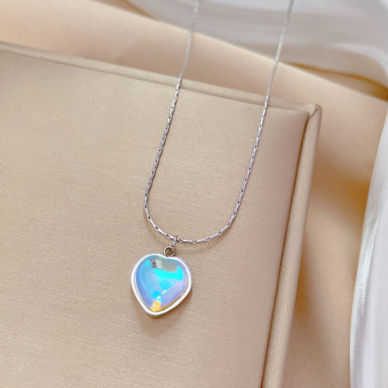 585 Gold Jewelry-316L Stainless Steel Gold Plated Romantic Aurora Gradient Heart Pendant Neckalce For Women Eternal Love Birthday Jewelry