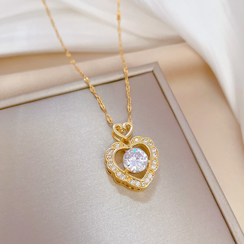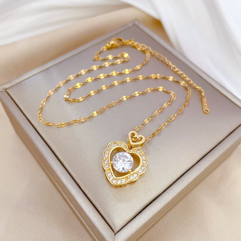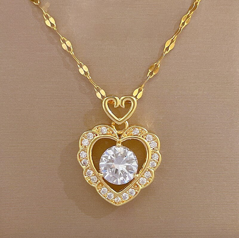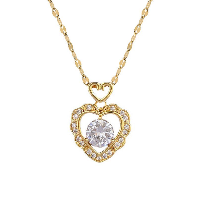 585 Gold Jewelry-316L Stainless Steel Gold Plated Shine AAA Clear Zirconia Heart Shaped Charm Pendant Necklace For Women Luxury Jewelry