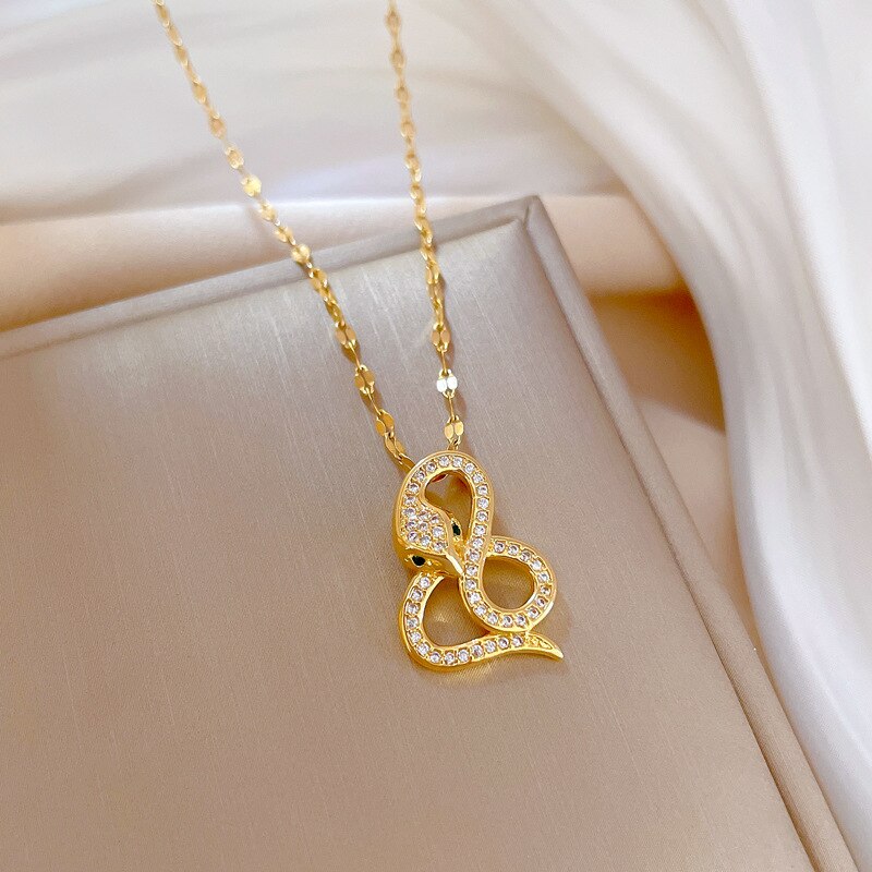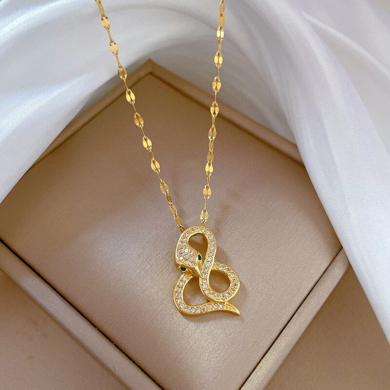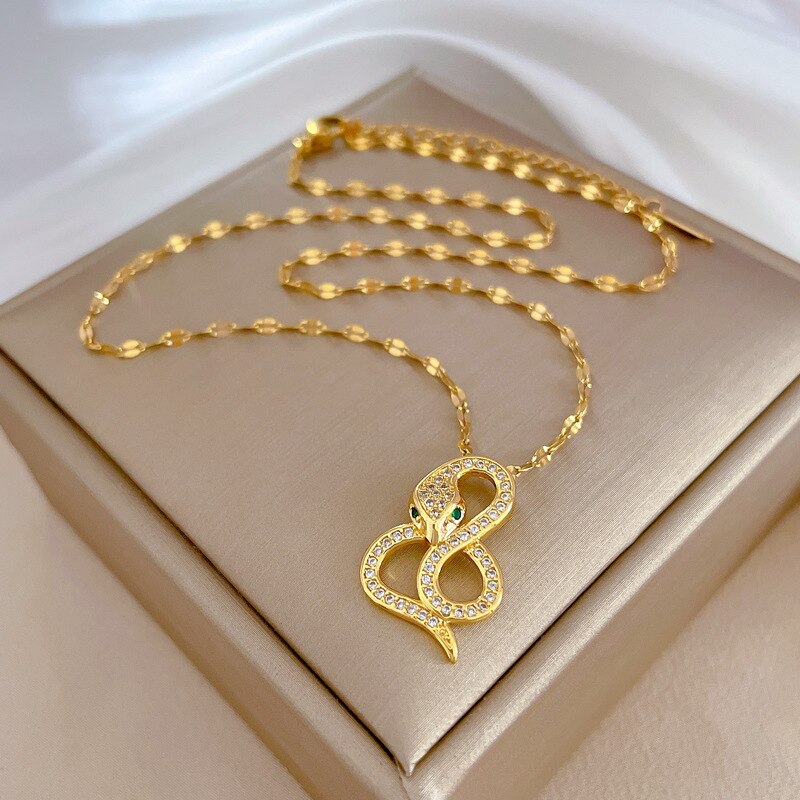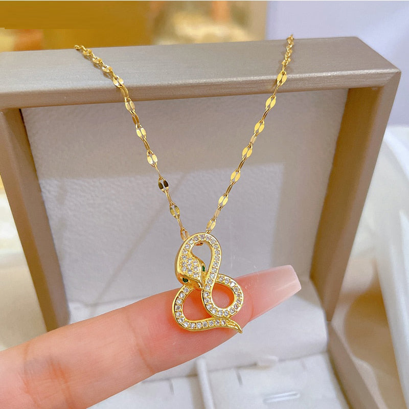 585 Gold Jewelry-316L Stainless Steel Gold Plated Snake Shaped Pendant Necklace For Women Fashion Girls Clavicle Chain Party Jewelry Gifts