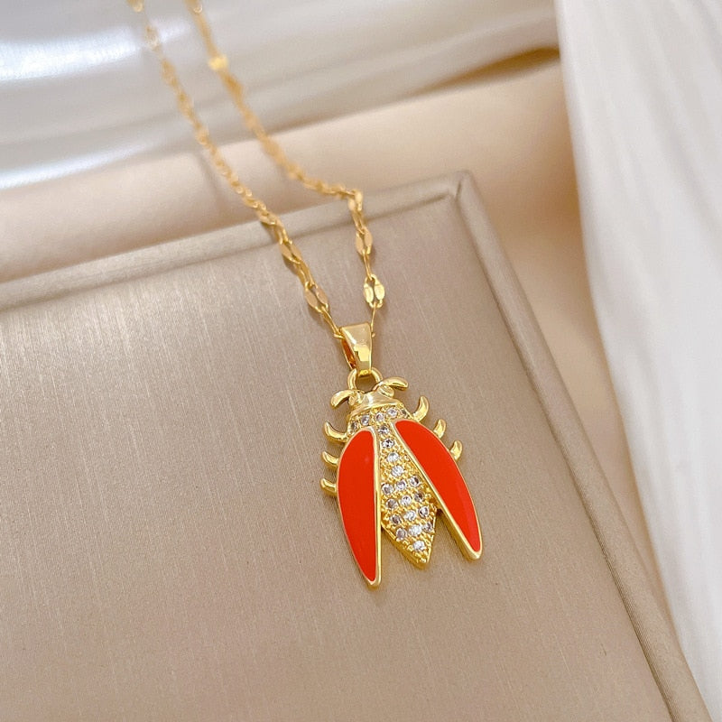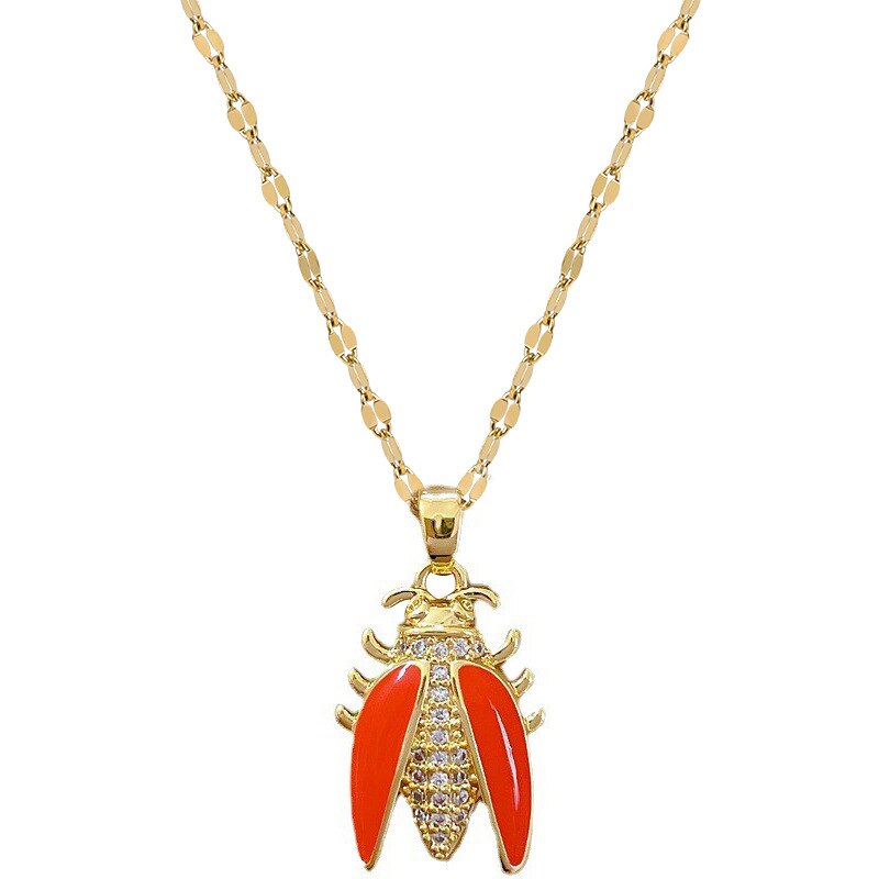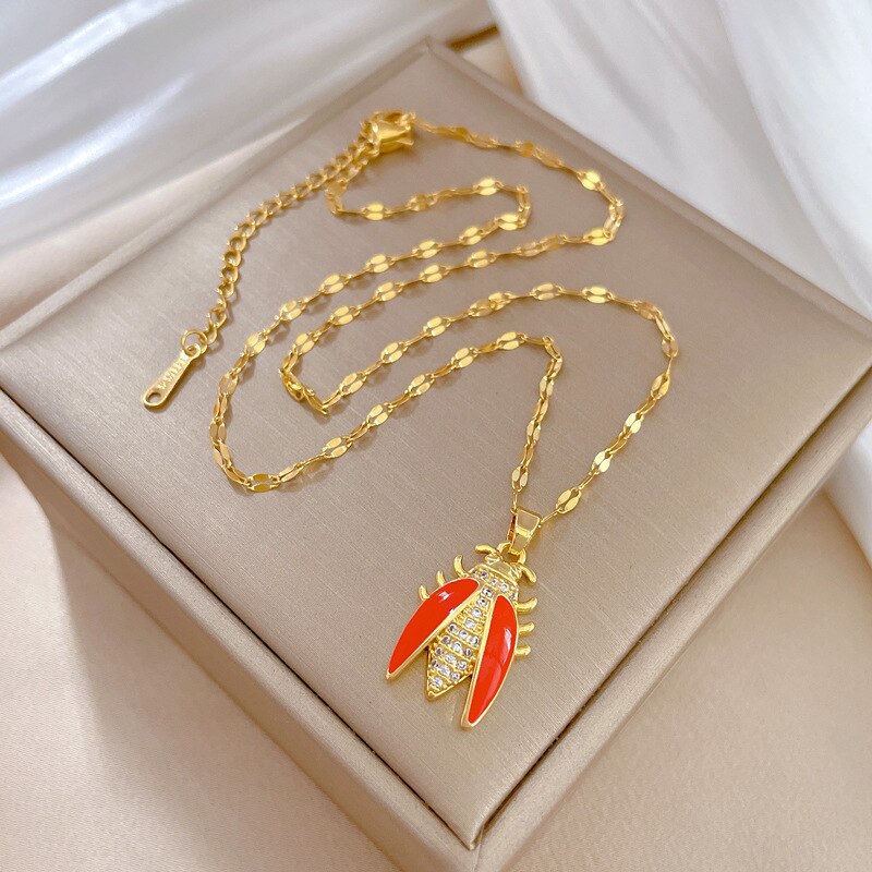 585 Gold Jewelry-316L Stainless Steel Gold Plated Temperament Animal Cicada Gemstone Pendant Girl Necklace Exquisite Clavicle Chain