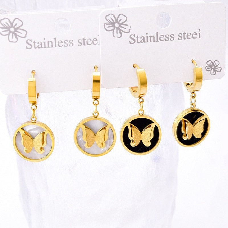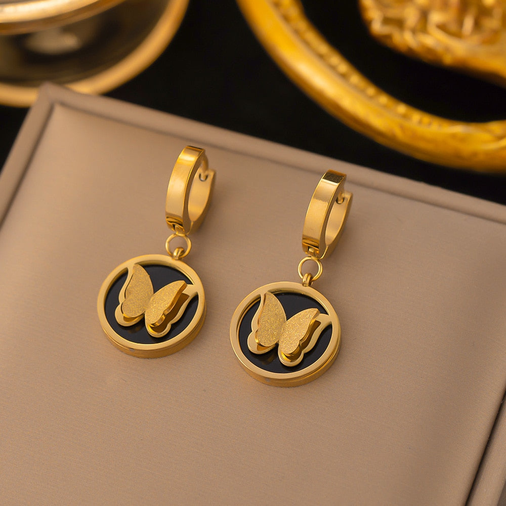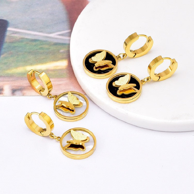 585 Gold Jewelry-316L Stainless Steel Gold Plated Temperament Charming Butterfly Hoop Earrings For Women Girl Drop Earrings No Fade