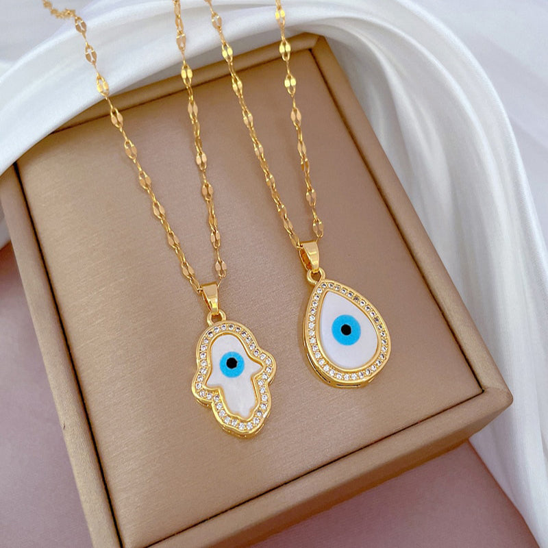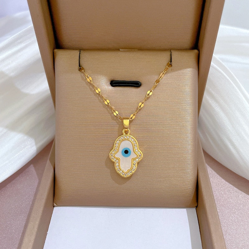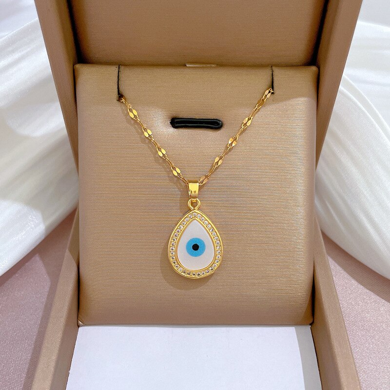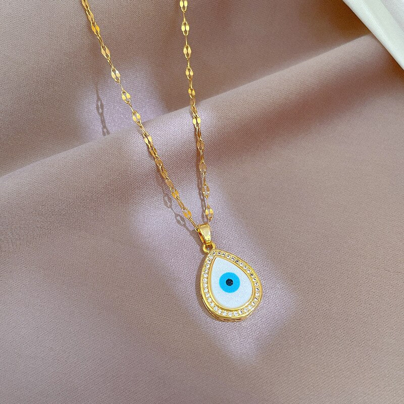 585 Gold Jewelry-316L Stainless Steel Gold Plated Turkey Blue Evil Eye Pendant Neckalce For Women Girls Bohemian Lucky Jewelry
