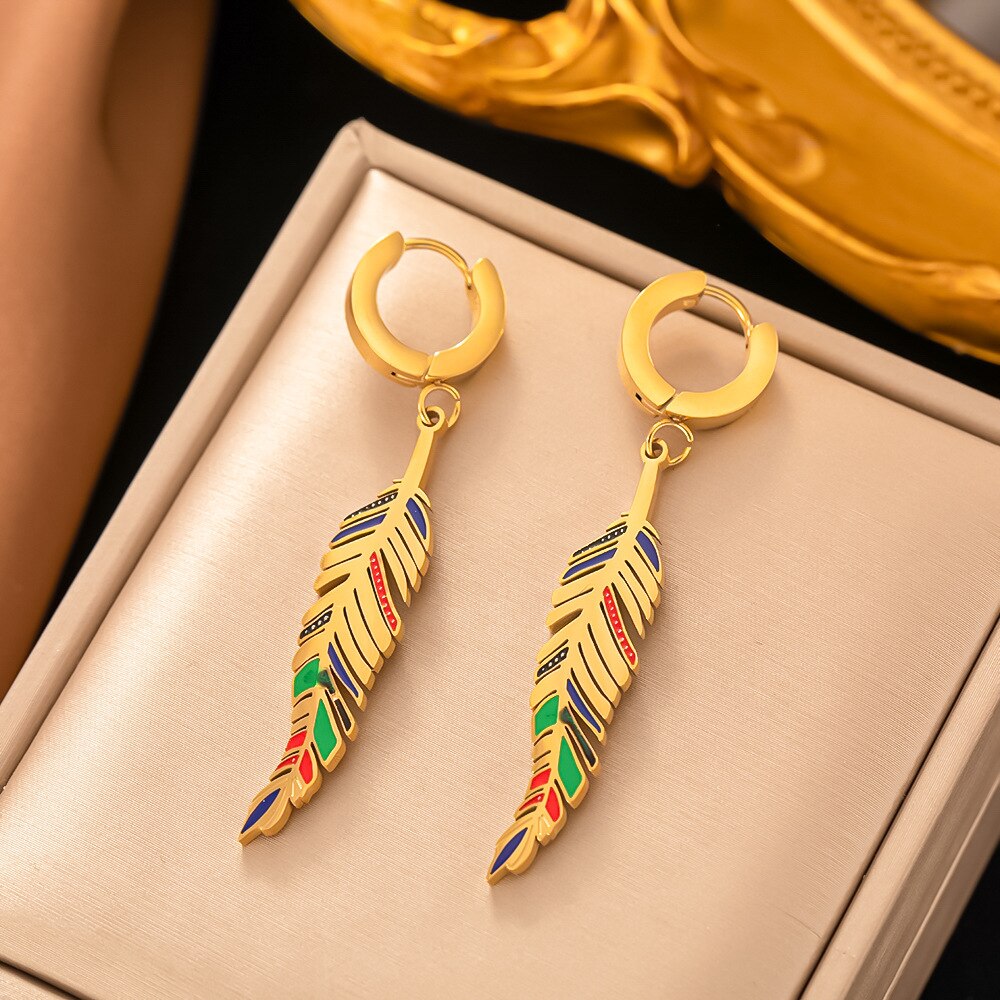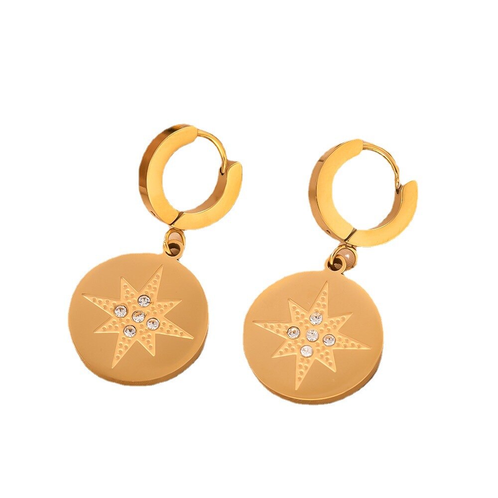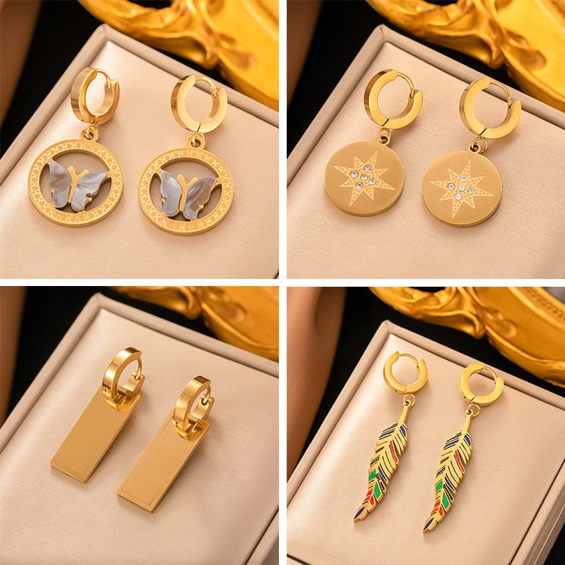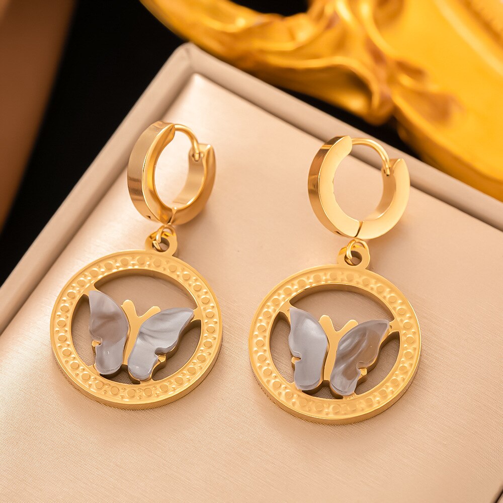 585 Gold Jewelry-316L Stainless Steel Gold Plated Vintage Temperament Butterfly Leaf Round Hoop Earrings For Women Drop Earrings Gifts