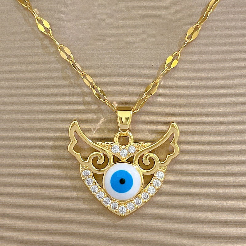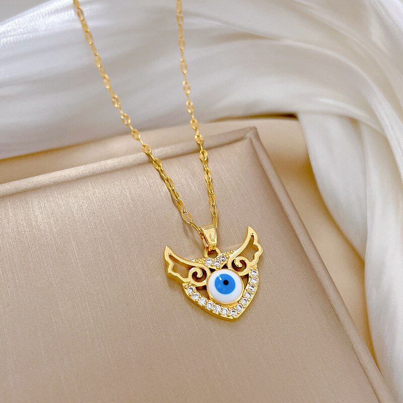 585 Gold Jewelry-316L Stainless Steel Gold Plated Zircon Evil Eye Pendant Necklace For Women Vintage Turkish Demon Eye Choker Charm New