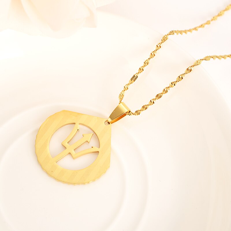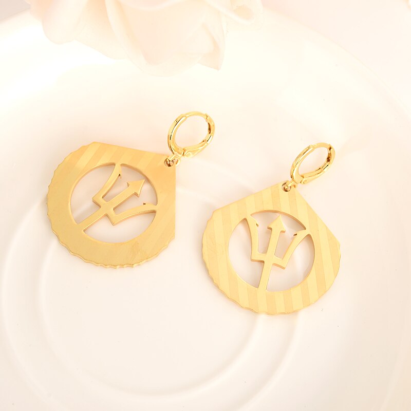 Afraic Jewelry-gold Poseidon Trident Pendant Necklace chain Earrings sets Jewelry Gold Christian party jewelry sets for women girl Best Gifts