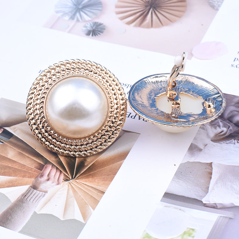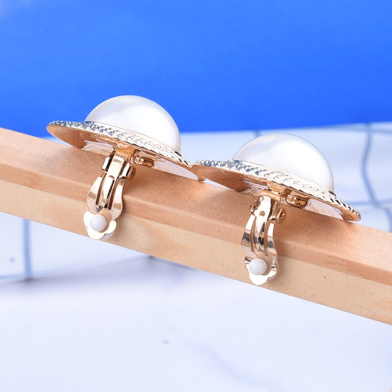 Fashion Earrings- New Gold Round Pearl Cuff Ear Clips for Women Unique Non-piercing Clip Earrings Fashion Simple Korean Jewelry Party Gift