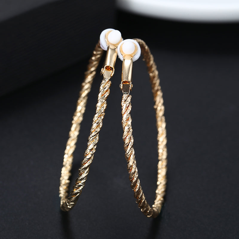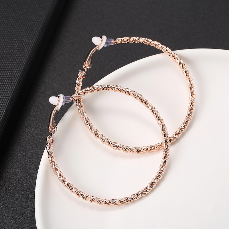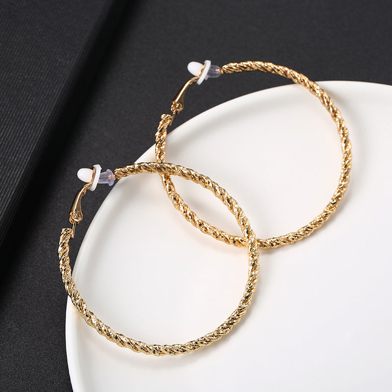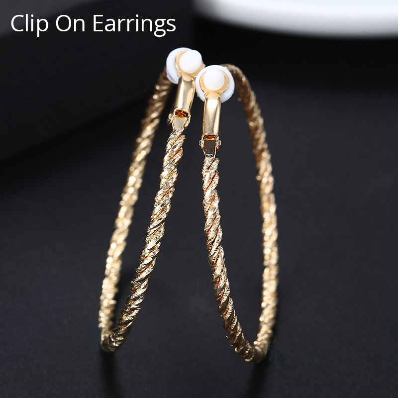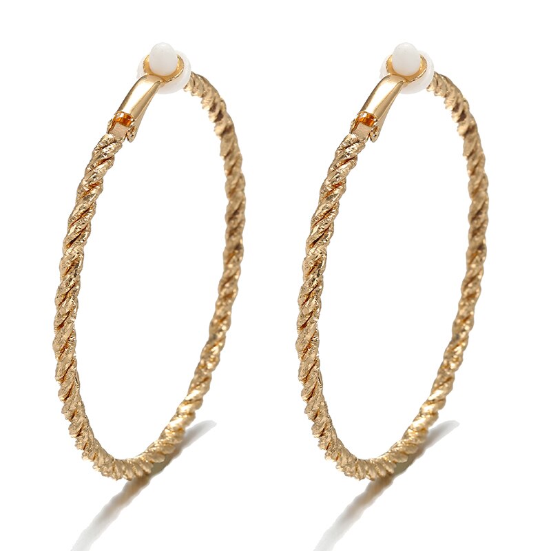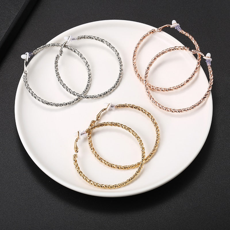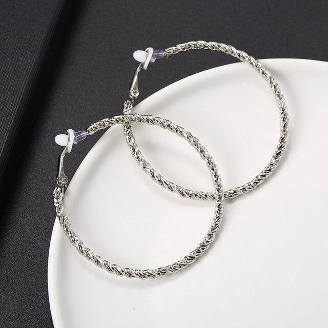 Fashion Earrings-Gold Silver Color Big Round Hoop Clip Earrings No Hole for Women Twisted Circle Large Size Ear Clips Jewelry for Party