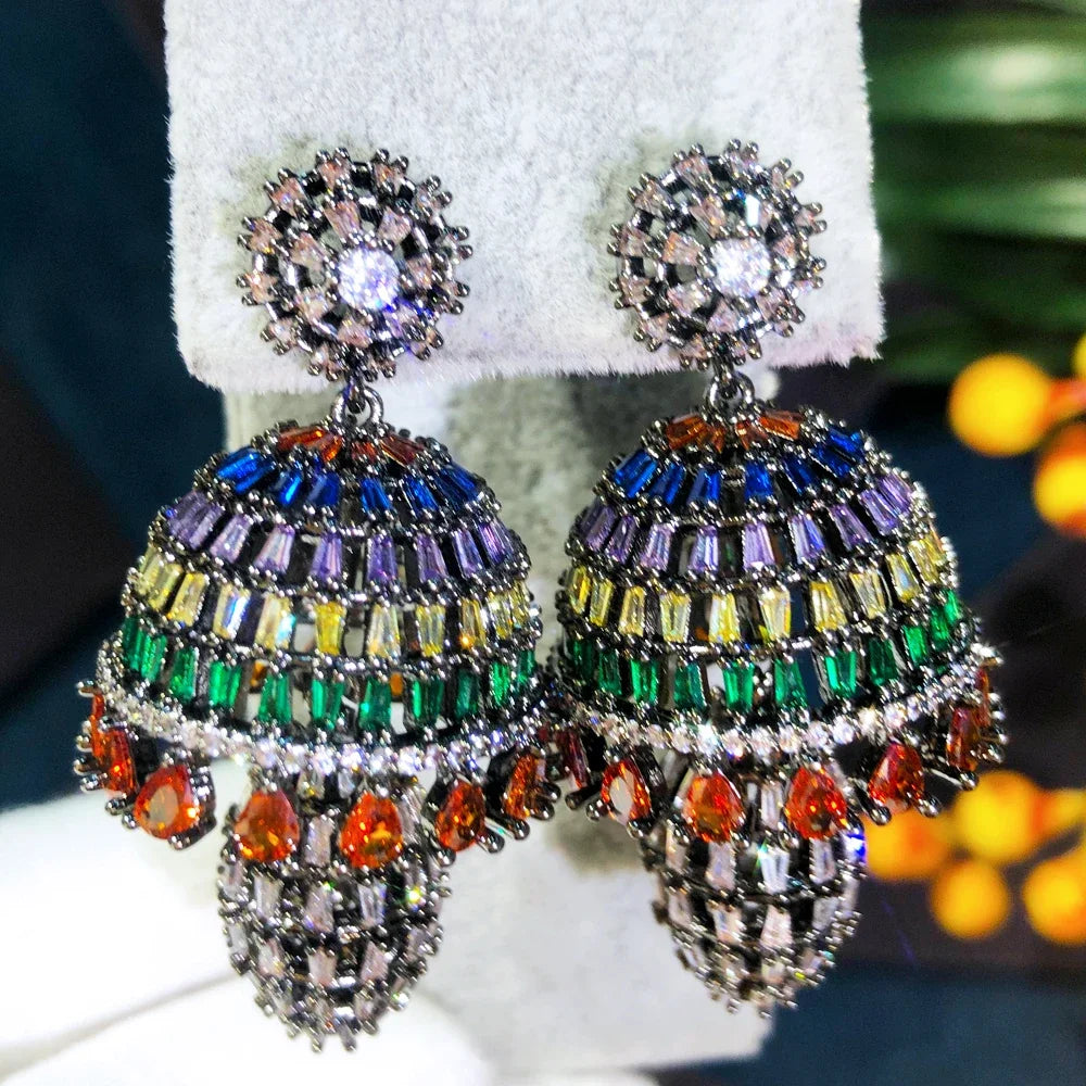 Gorgeous Multicolor Dangle Earrings Full Shiny Mirco Zircon Dubai Bridal Wedding Drop Earring