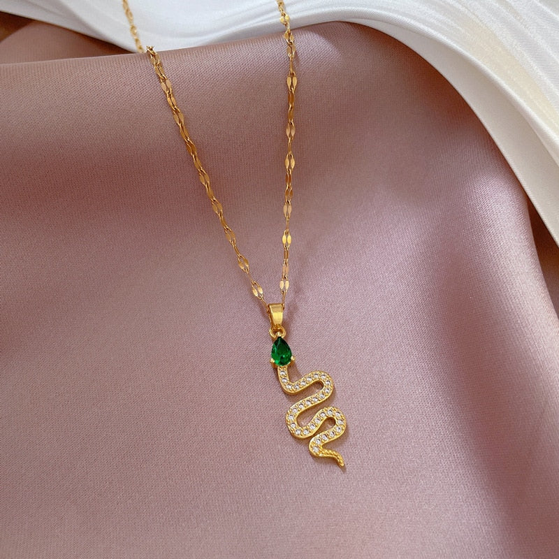 585 Gold Jewelry-Stainless Steel Goth Snake Pendant Necklace For Women Gold Color Necklaces Trendy Aesthetic Jewelry choker collars