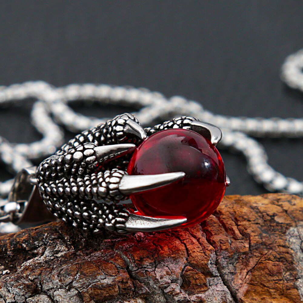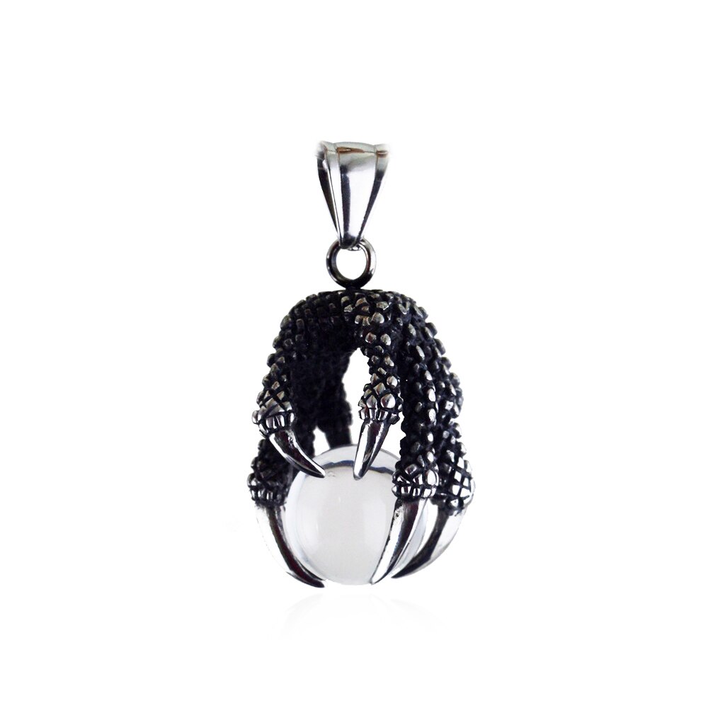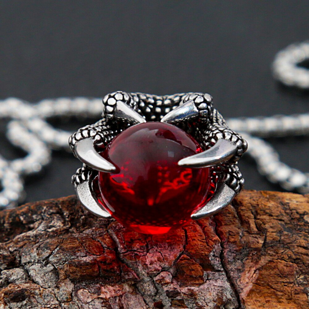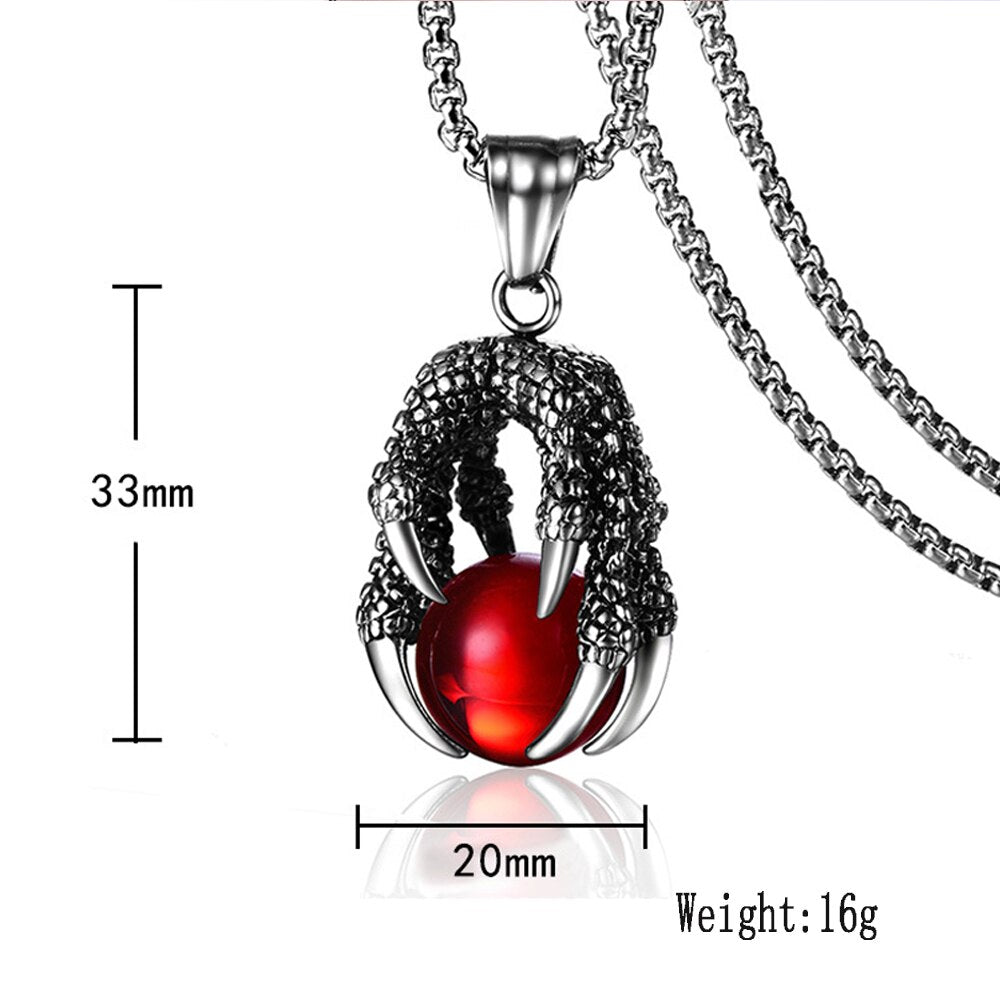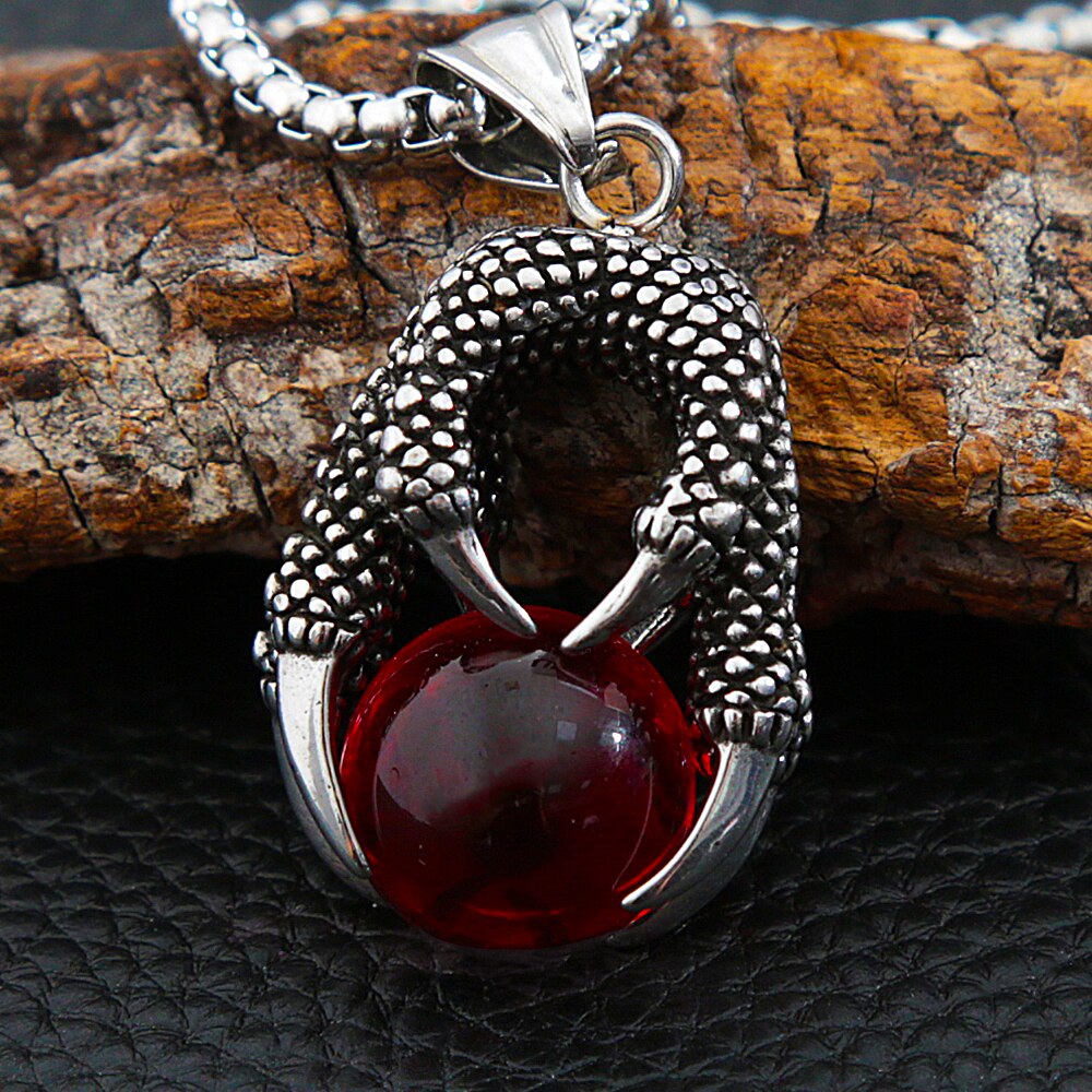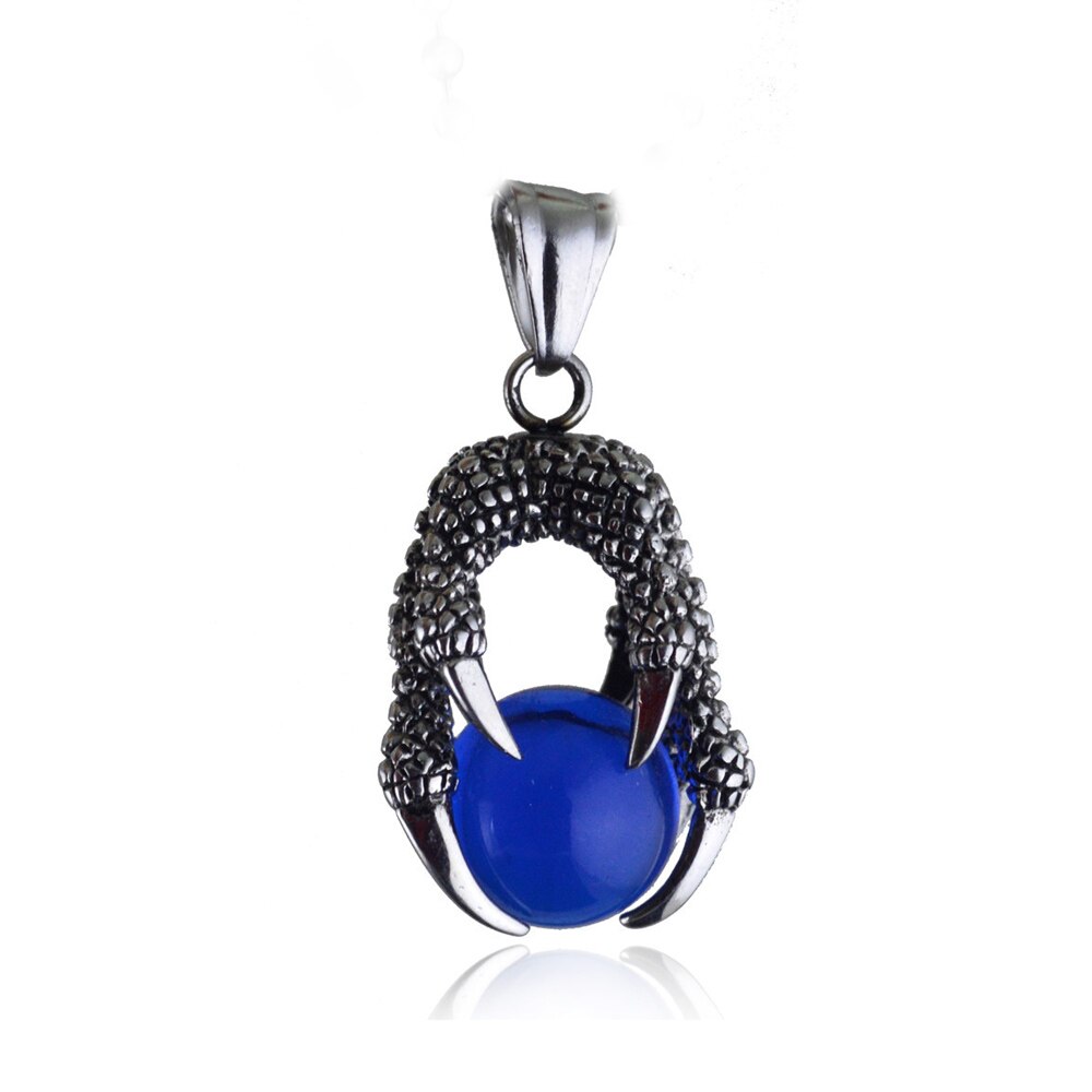 Gothic Men Stainless Steel Dragon Claw Pendant Necklace Blue White Black Red Glass Bead Pendant Retro Style Jewelry Gift