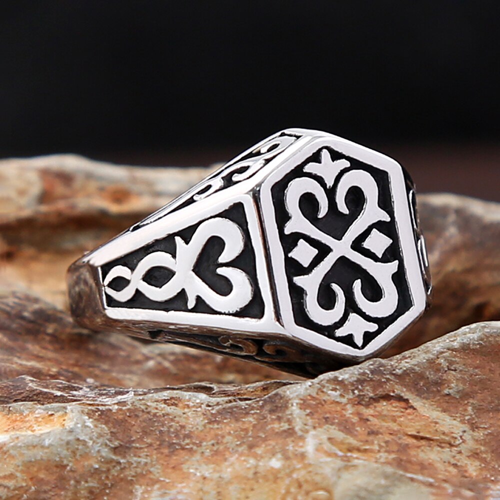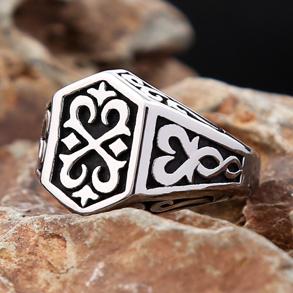 Vikings Jewelry-Gothic Vintage Nordic Viking Flower Pattern Ring For Men Women Stainless Steel Viking Fashion Rune Rings Amulet Jewelry Gifts