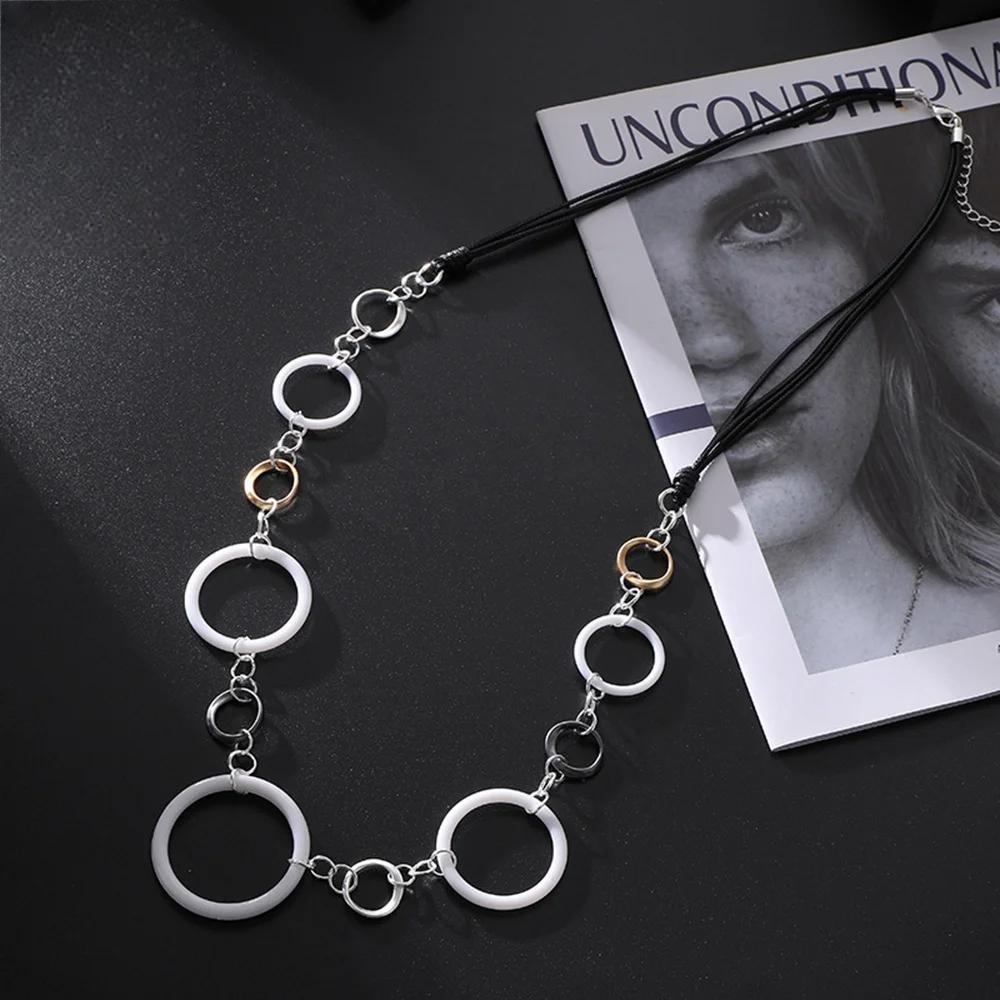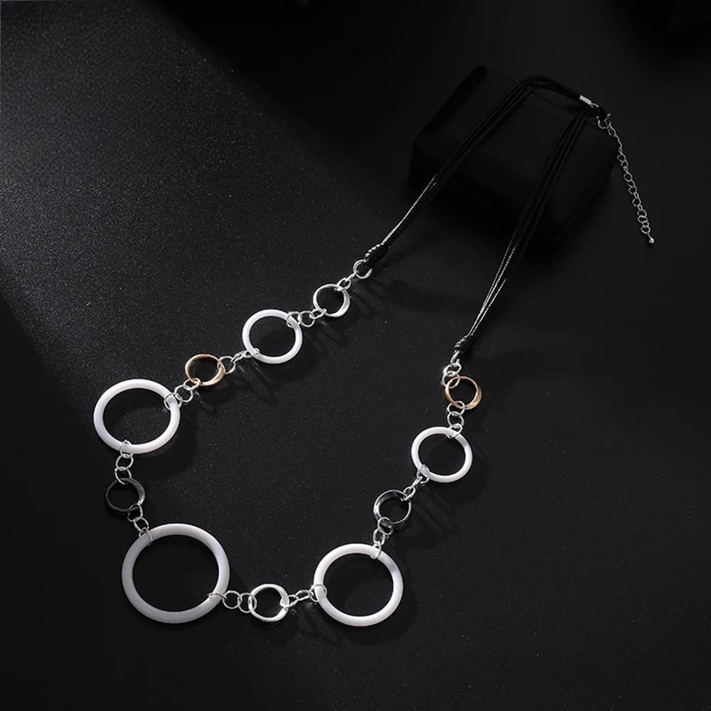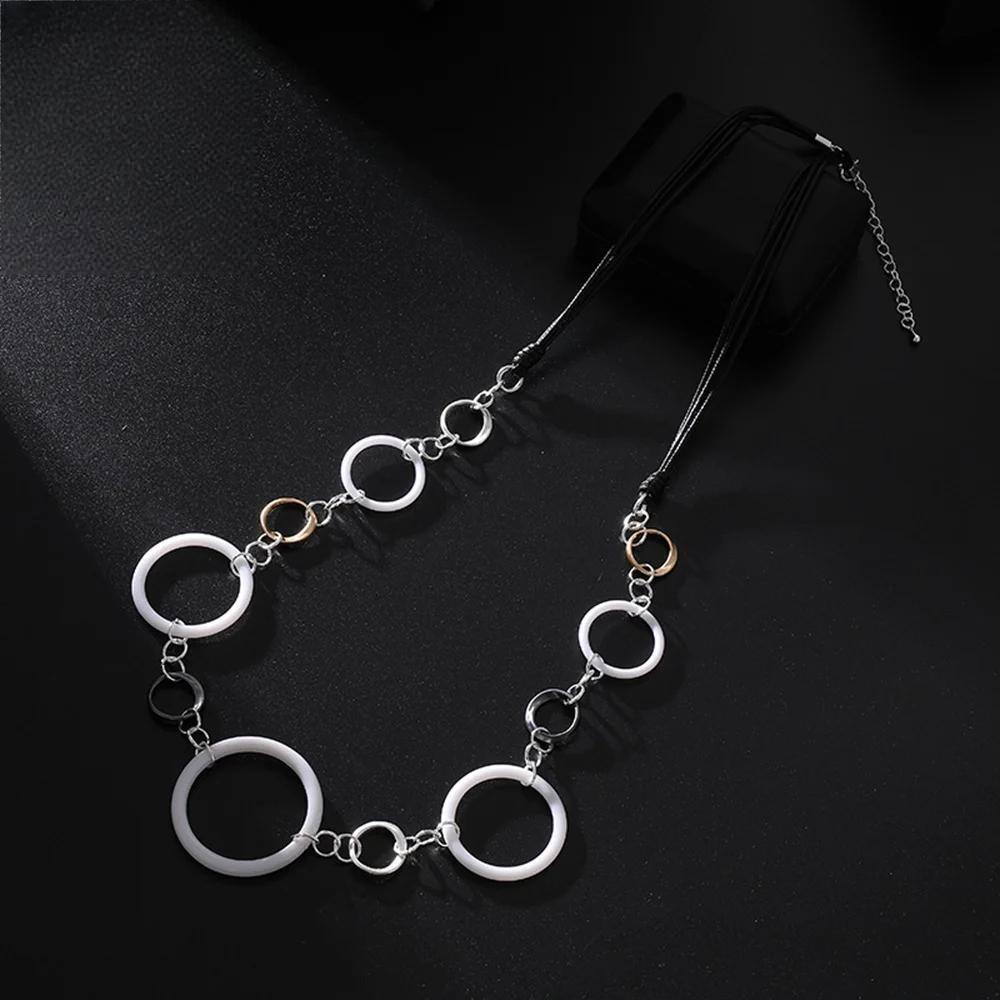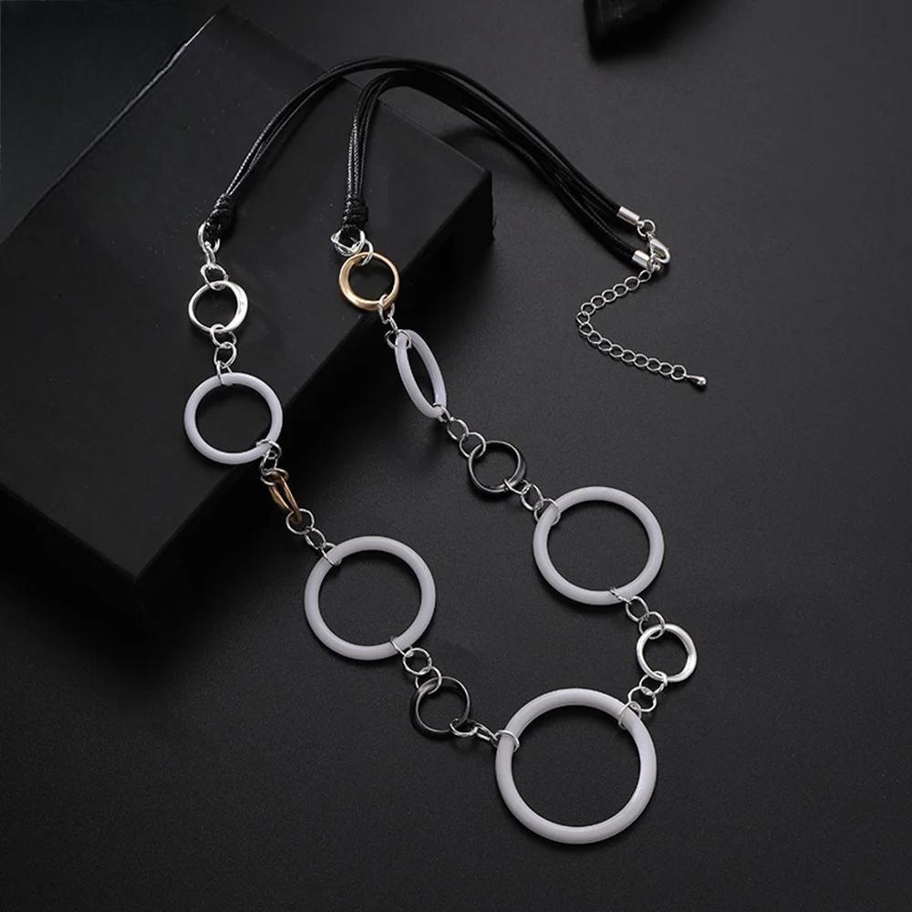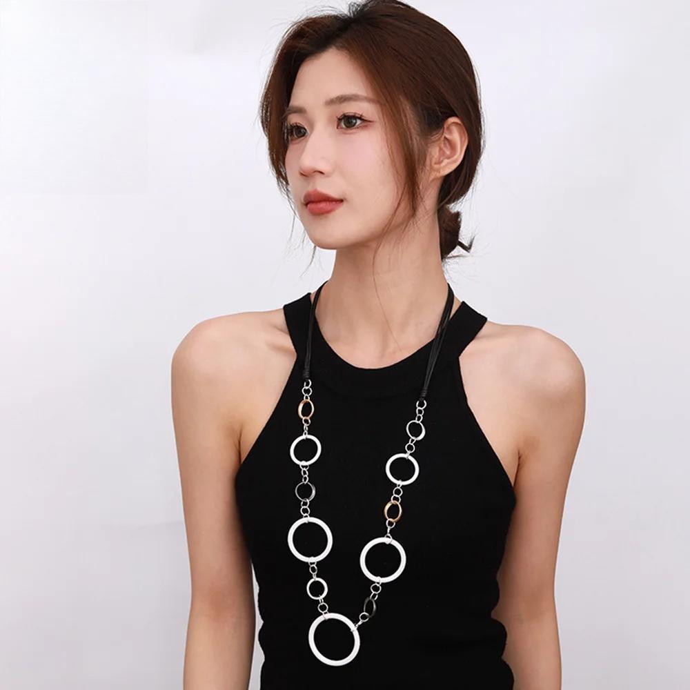 Handmade Long Gorgeous Sweater Chain with Geometric Circles Necklace Hollow Out Suspension Pendents for Women New Fashion Items