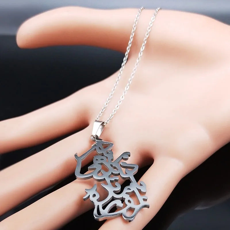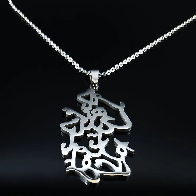 Handmade Persian Parsi Love Poem Stainless Steel Love Necklace Chain Women Silver Color Necklaces
