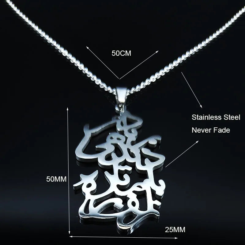 Handmade Persian Parsi Love Poem Stainless Steel Love Necklace Chain Women Silver Color Necklaces Jewelry colgantes