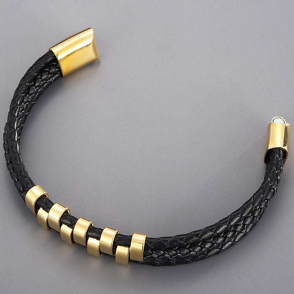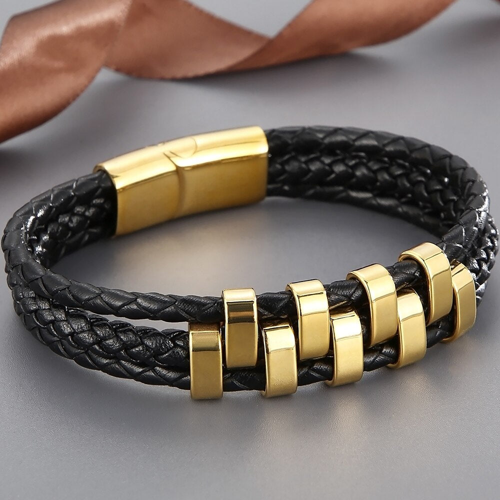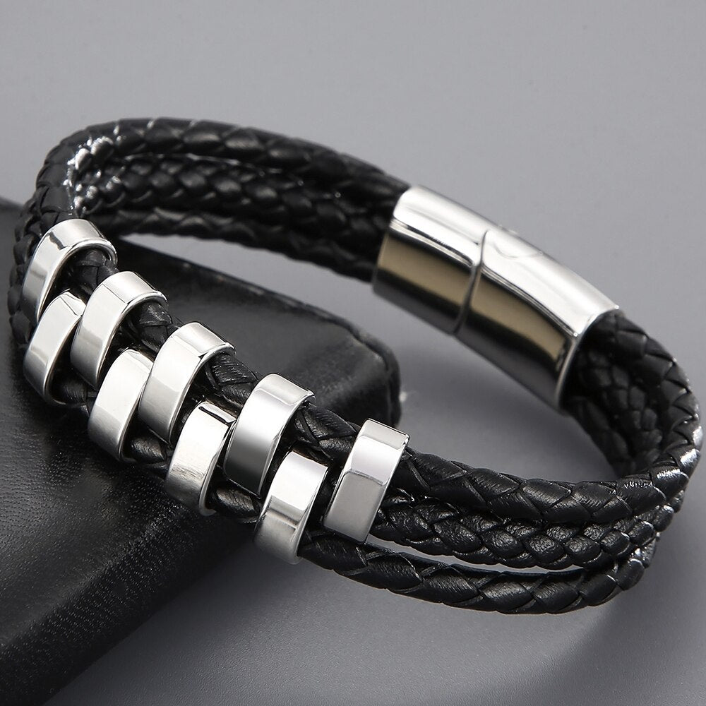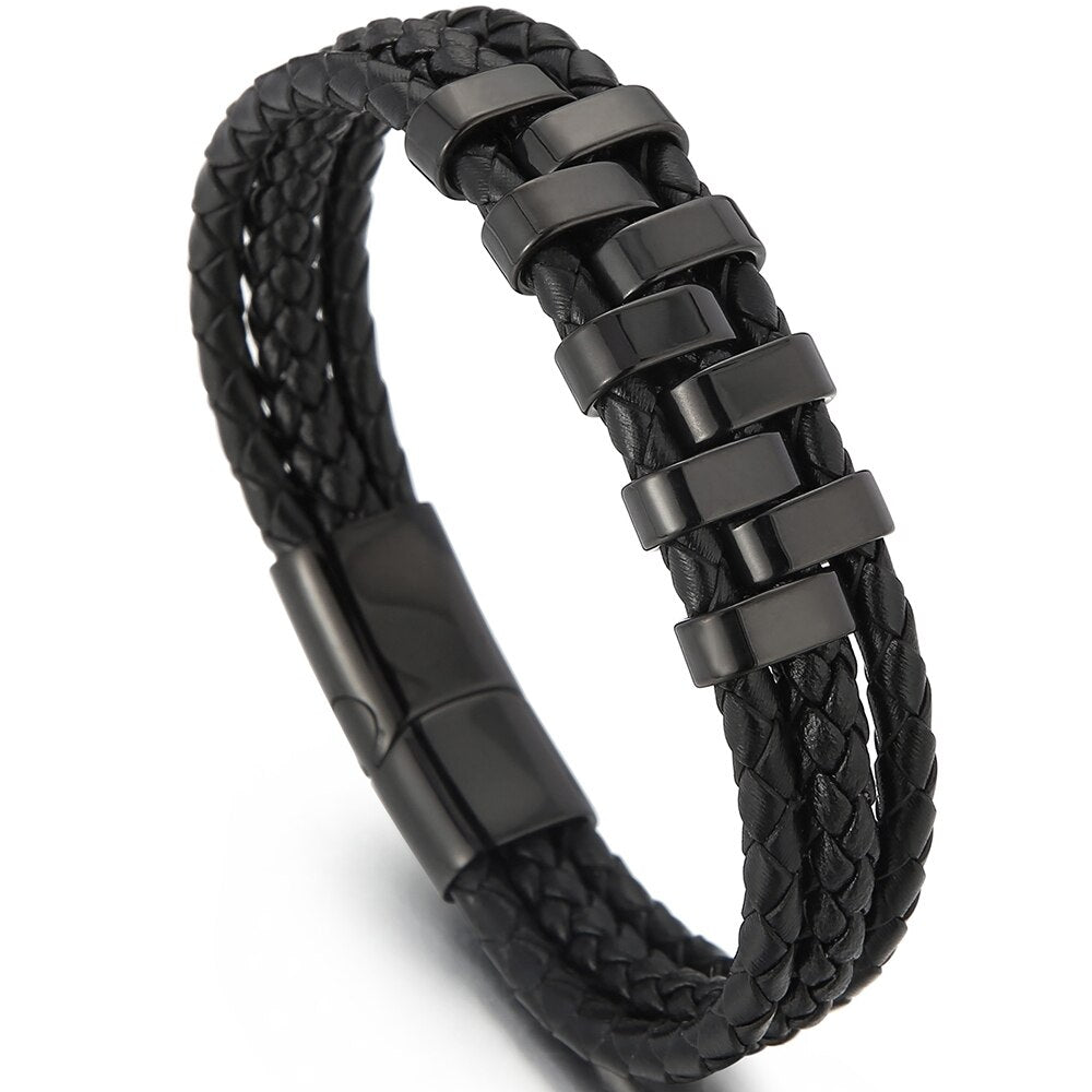Handmade Three Layer Leather Bracelet for Men In 316L Stainless Steel Men's Wrist Bracelets With Magnet Clasp Male Hand Jewelry