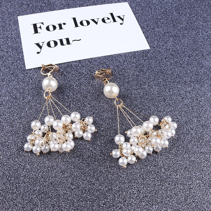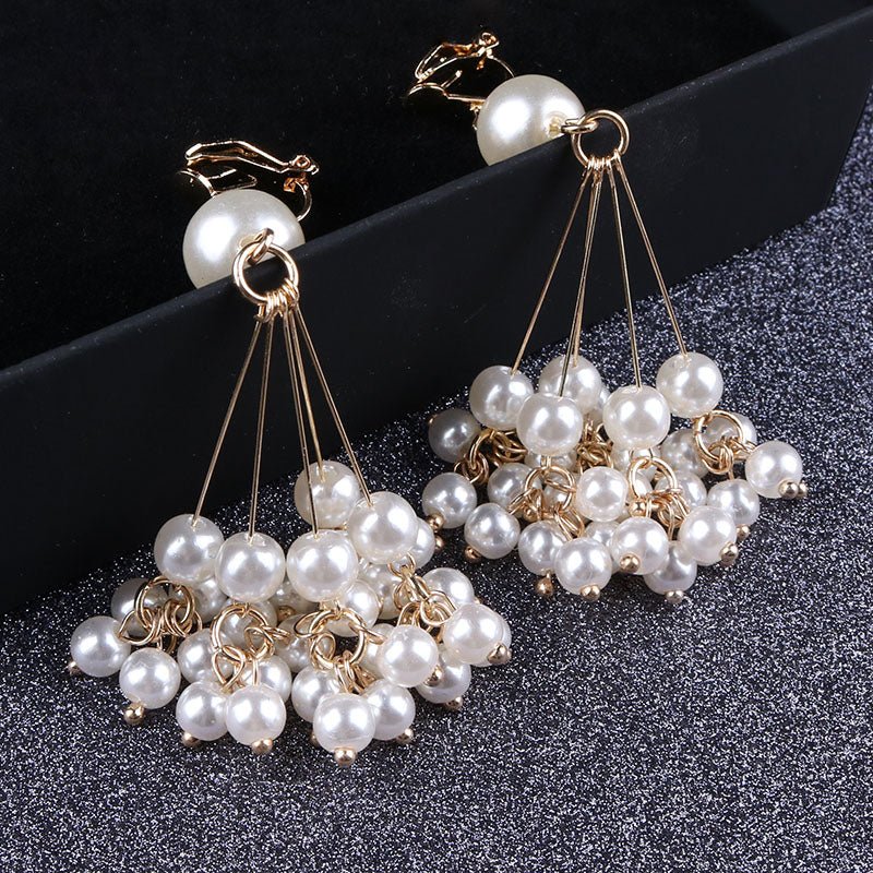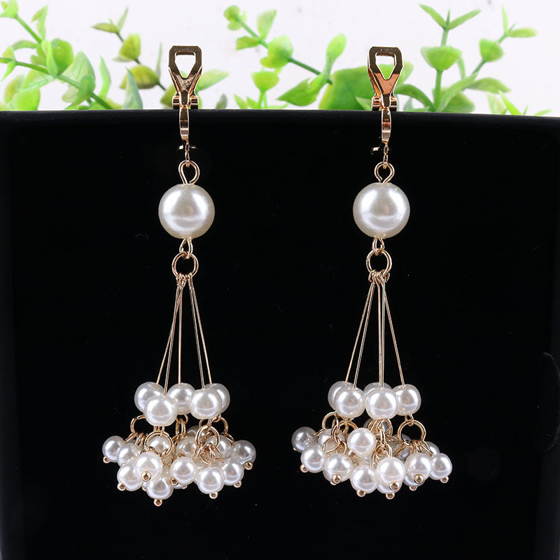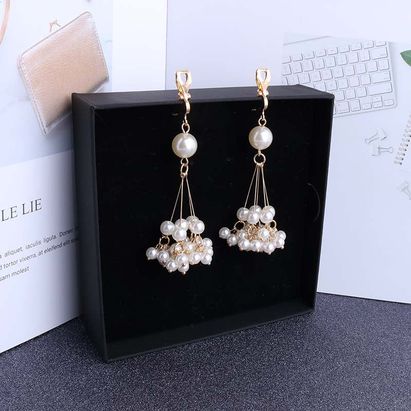 Fashion Earrings-New Arrival Hanging Simulated Clip Earrings Without Piercing for Women Party Wedding Attractive Elegant Ear Clip Fashion Jewelry