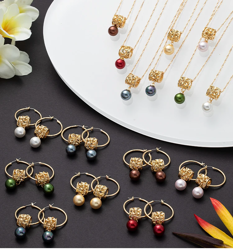 Jewelry Sets Hawaiian Gold Polynesian Women's Pearl Necklace Hoop Earing Earrings Set Necklace Sets for Women Jewellery Set