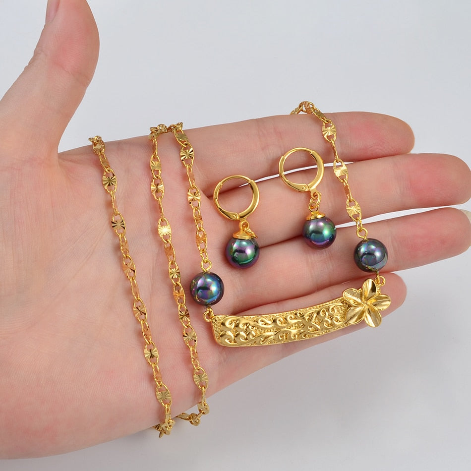 Hawaiian Pearl Jewelry sets Charm Pendant Necklaces Earrings Pohnpei Guam Micronesia Chuuk Marshallese Kiribati .