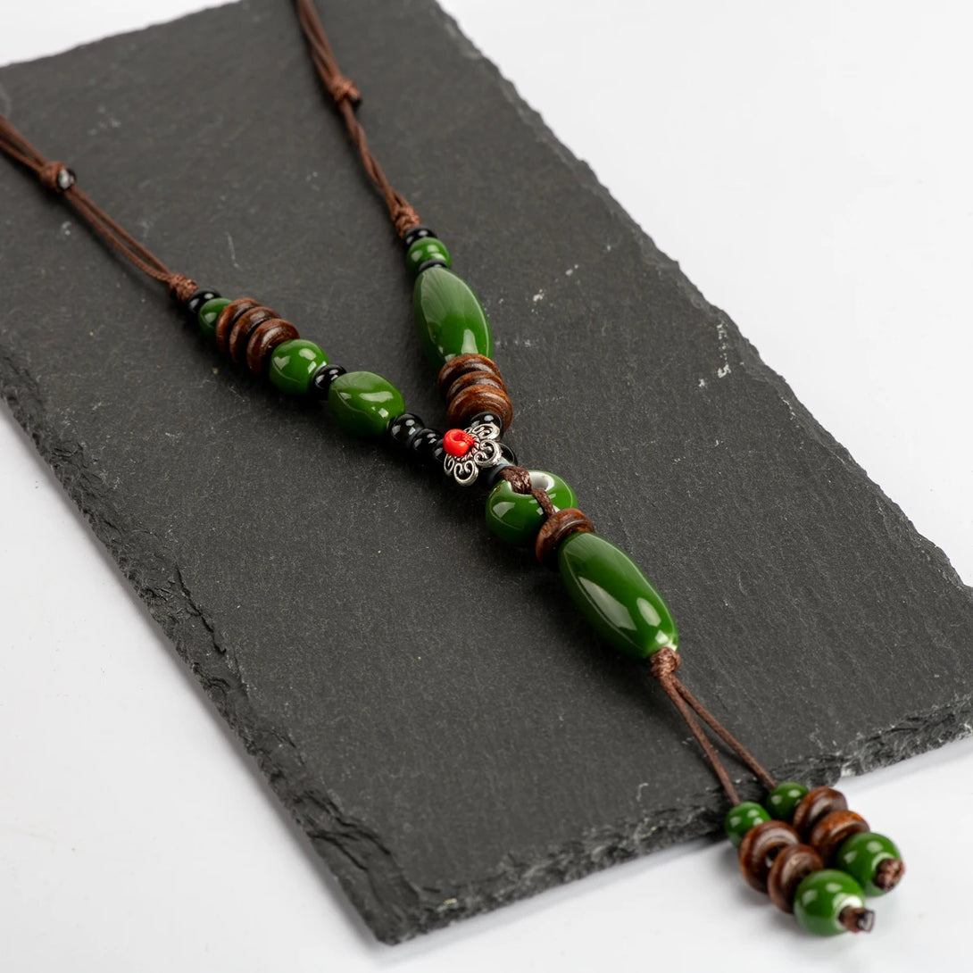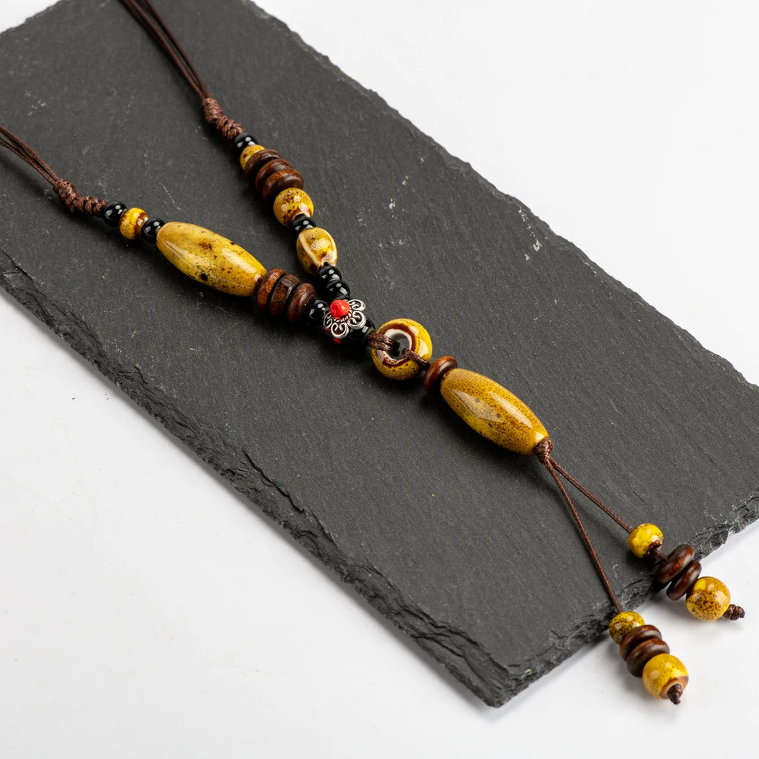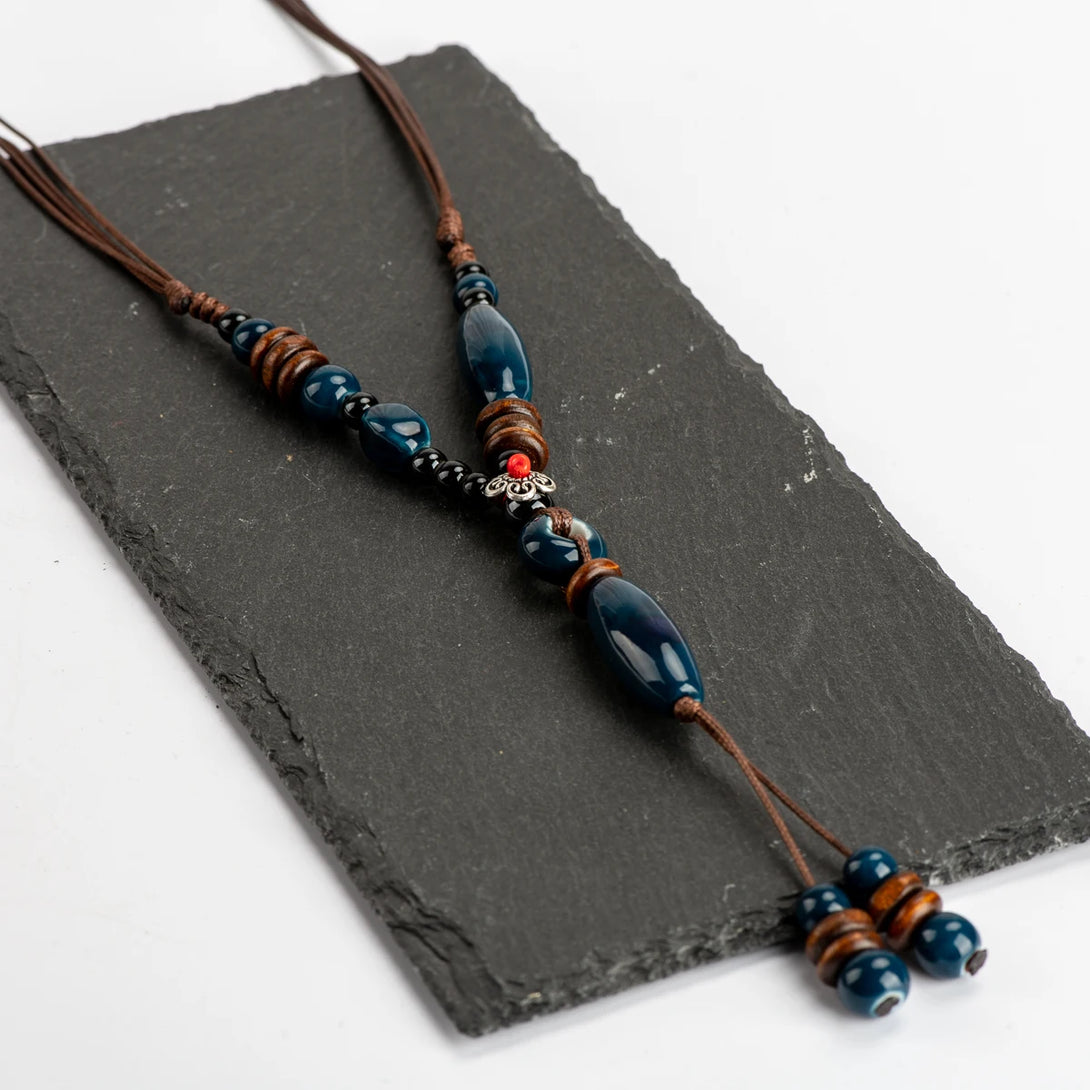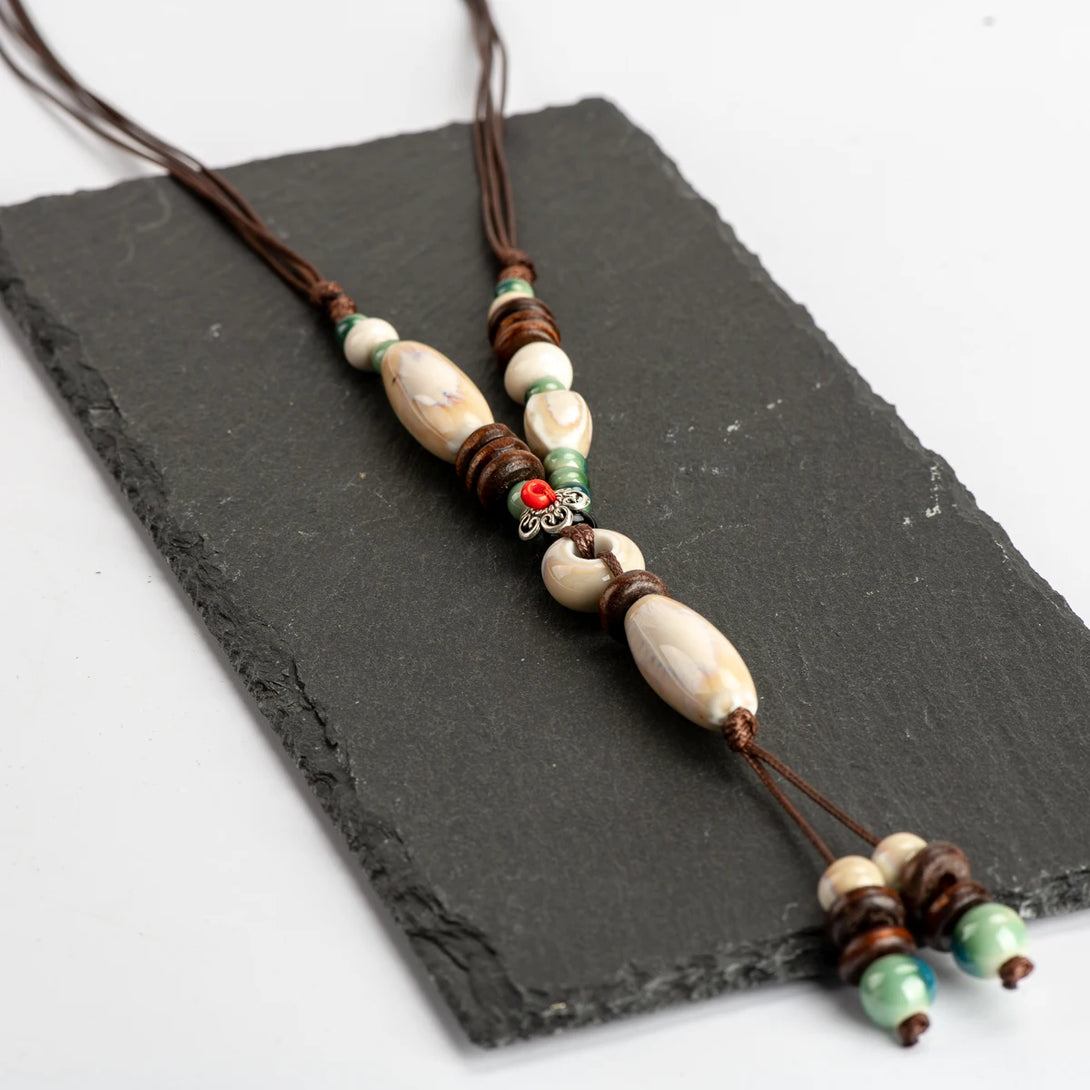 Heaert Sharp Ceramics bead Necklace Chinese style Tassel necklaces vintage ceramic beads women necklaces