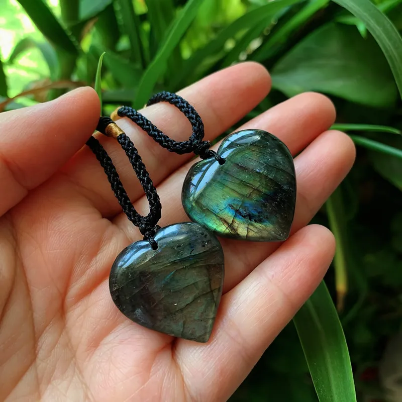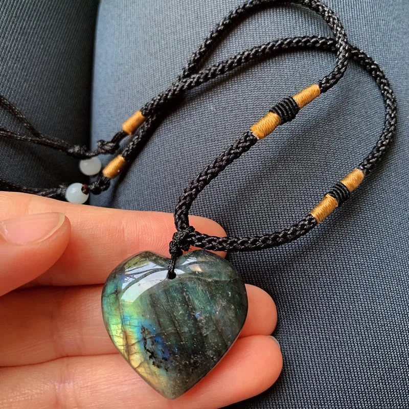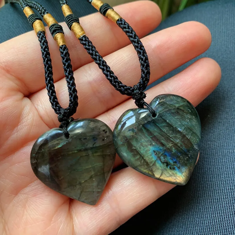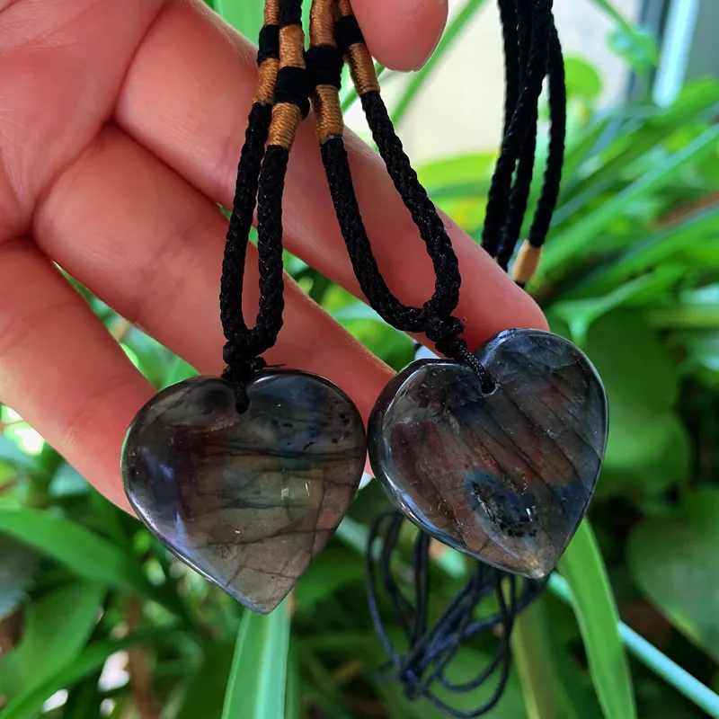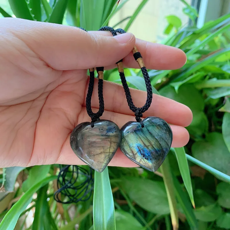 Reiki Energy Natural Stone Pendant Heart Labradorite Quartz Necklace Grey Moonstone Crystal Necklace for Women Lover