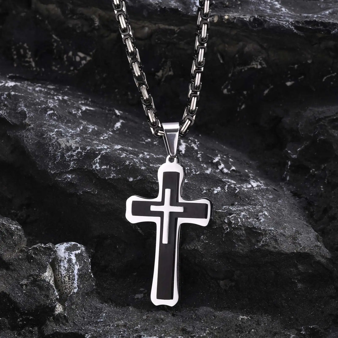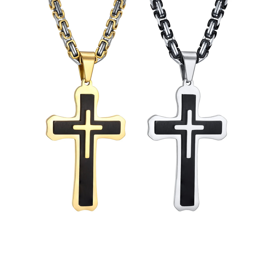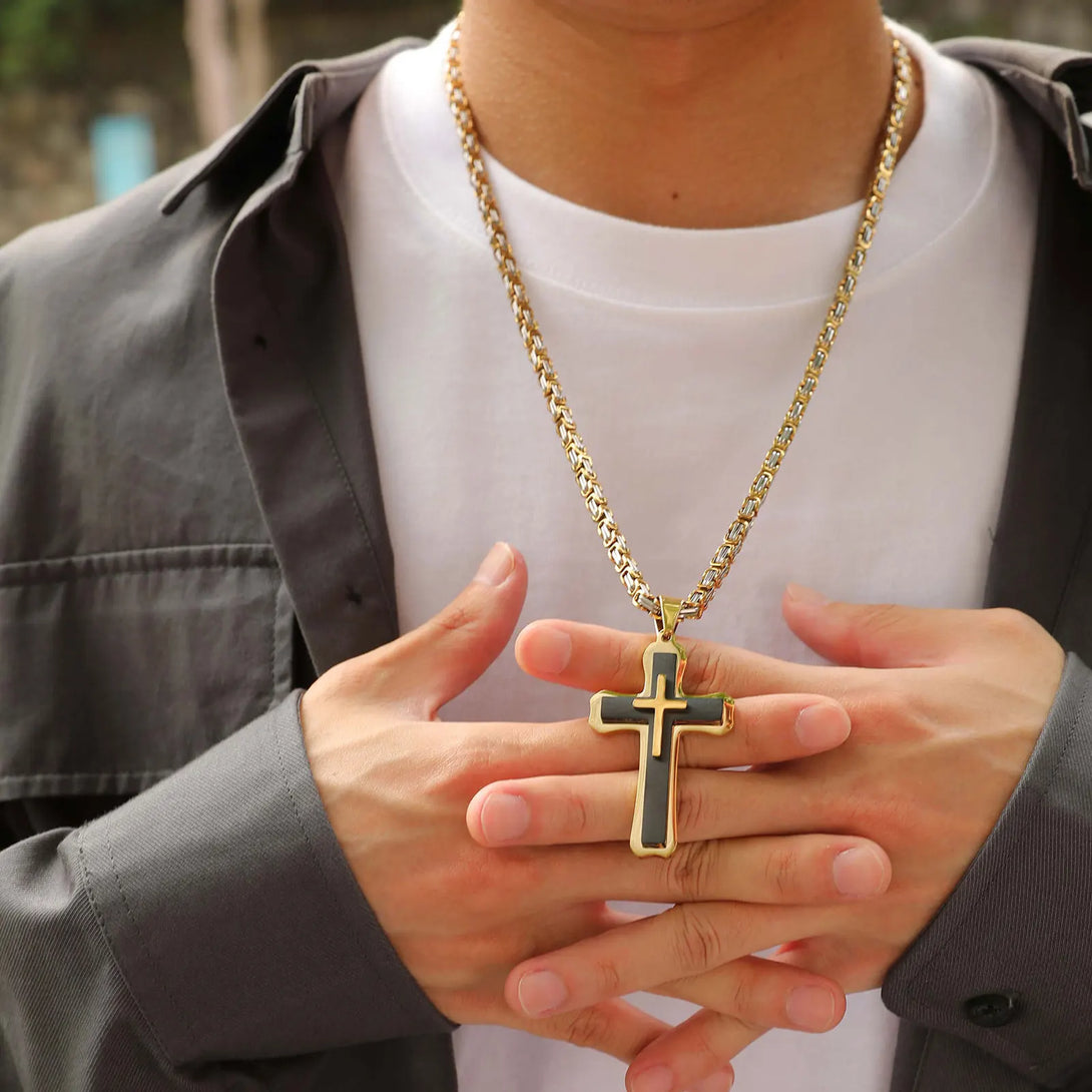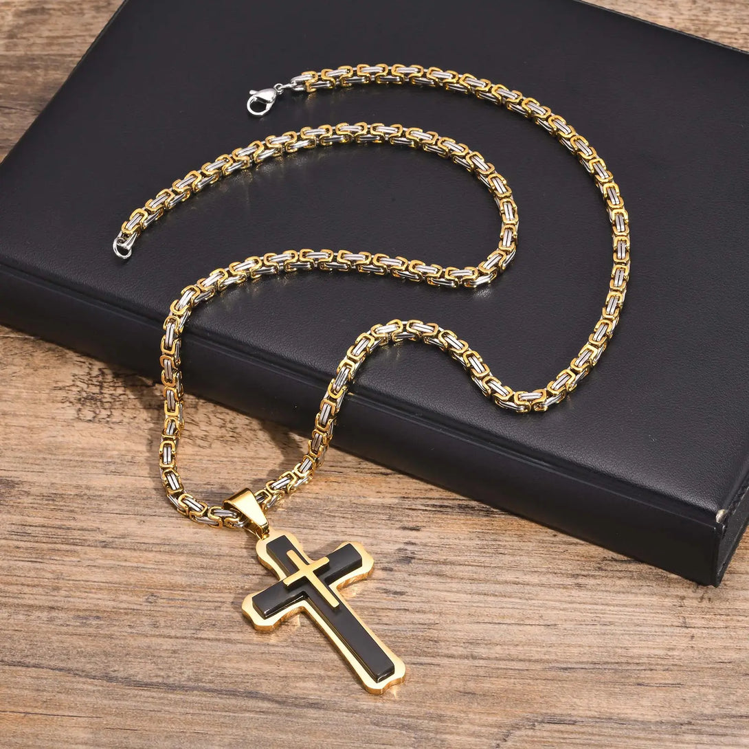Heavy Cross Necklaces for Men Boys,Retro Byzantine Link Chain Necklace,Two Tones Pendant Necklace,Prayer Jewelry