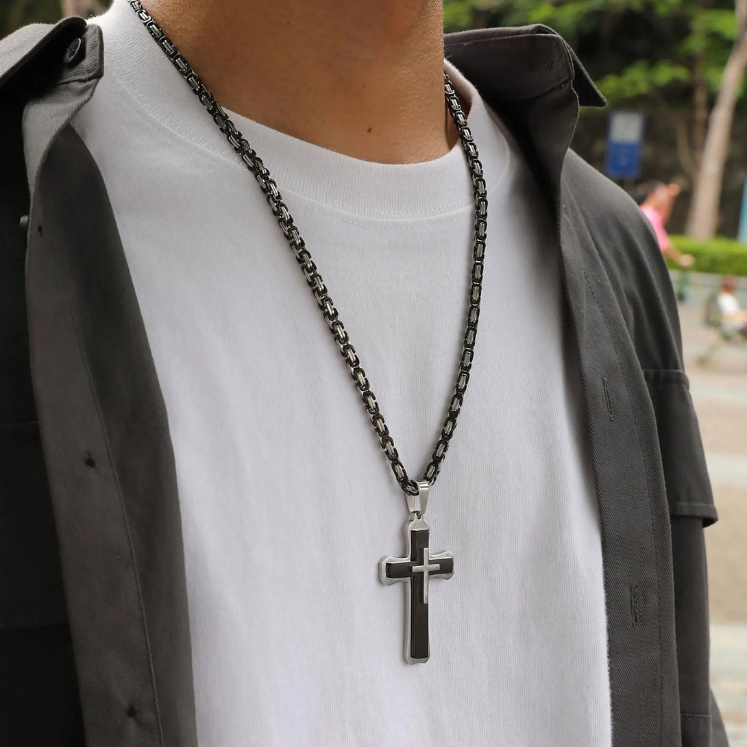 Heavy Cross Necklaces for Men Boys,Retro Byzantine Link Chain Necklace