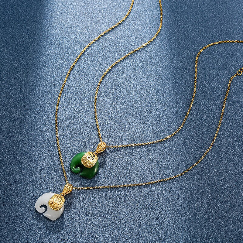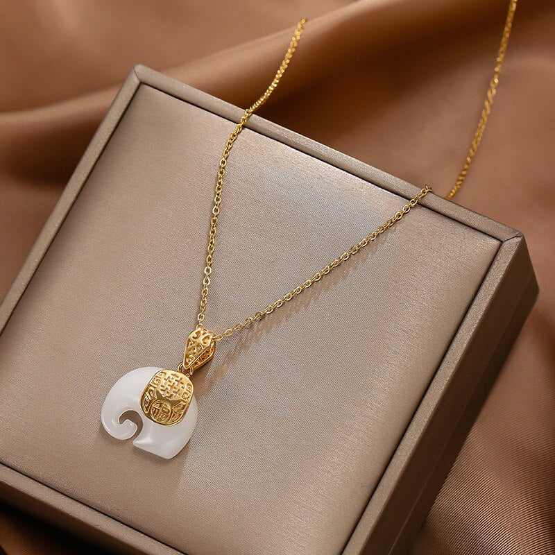 585 Gold Jewelry-316L Stainless Steel Hetian Jade Elephant Pendant Necklace Woman Fashion Elegant High Quality Jewelry Accessories Gift