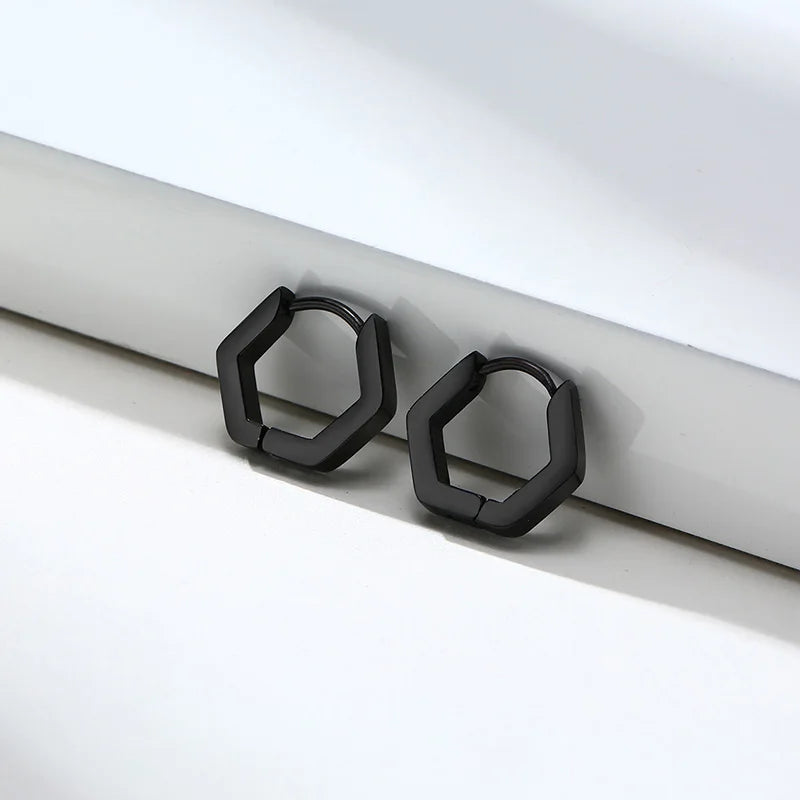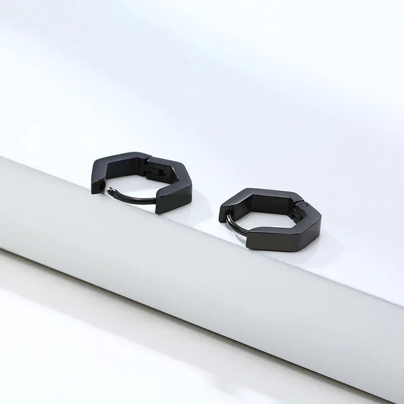 Hexagon Earrings for Men Women Geometry Hex Huggies Stainless Steel Modern Unique Earring Unisex Jewelry