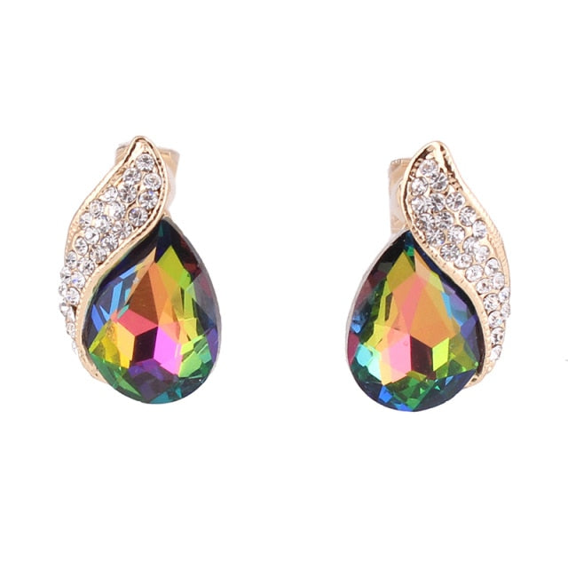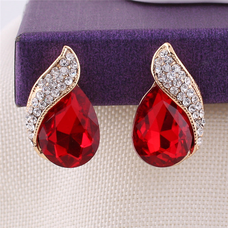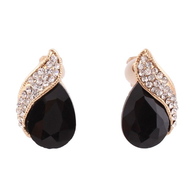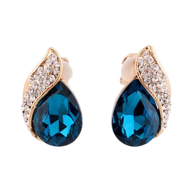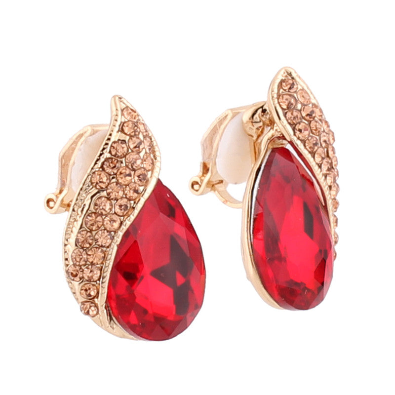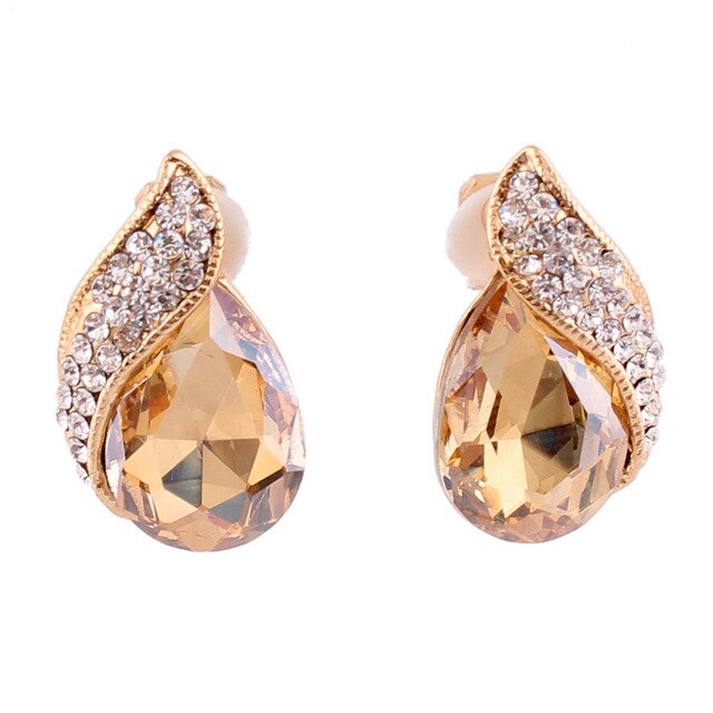 High-grade Rhinestone Crystal Tear Drop Shape Clip on Earrings Non Piercing