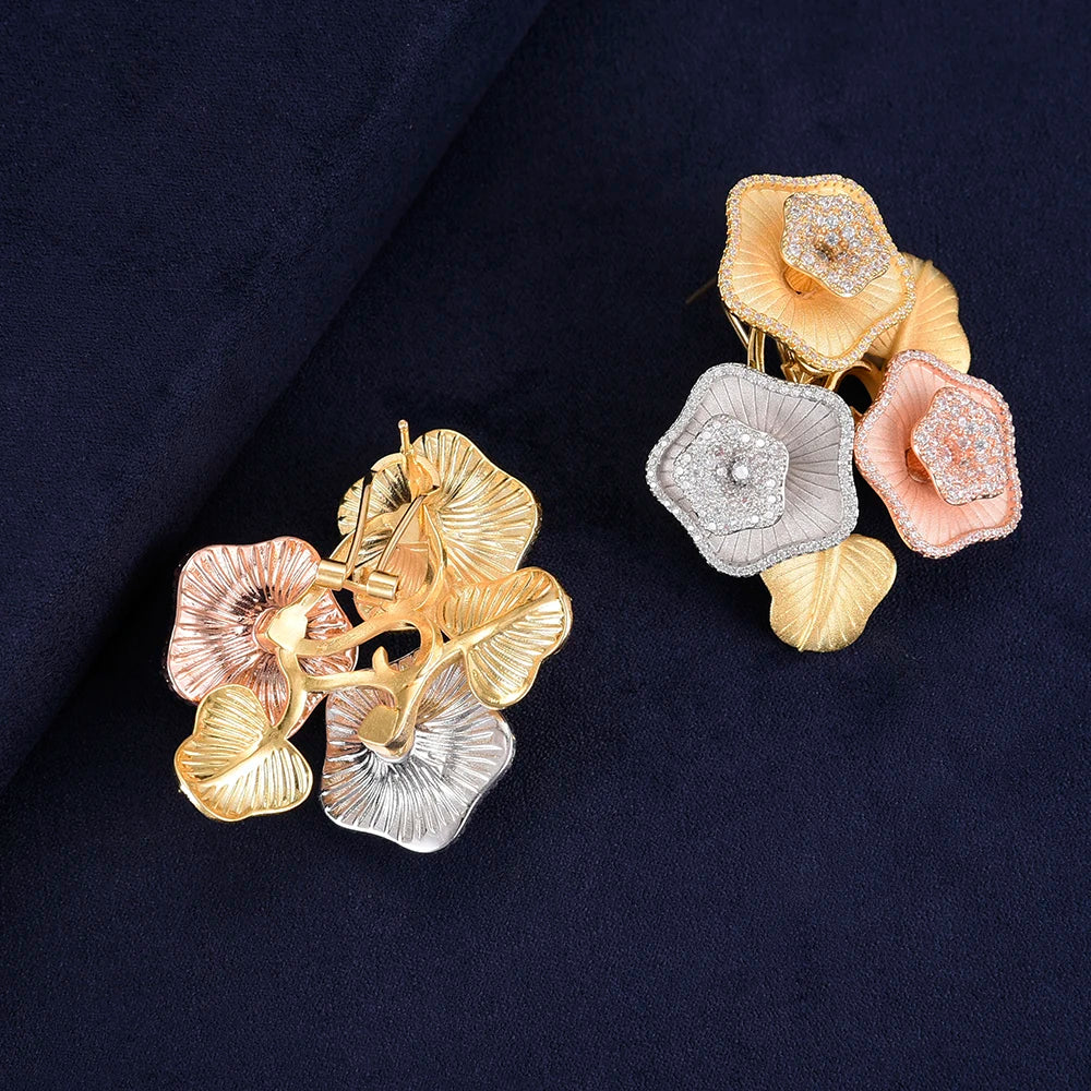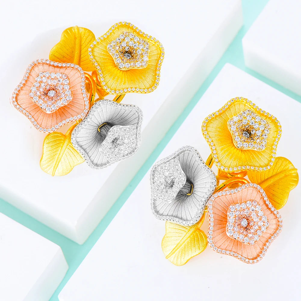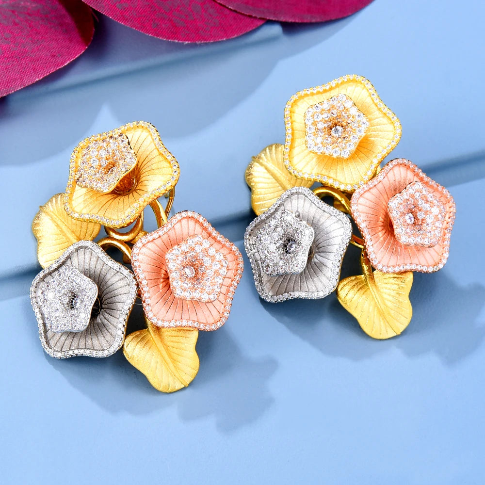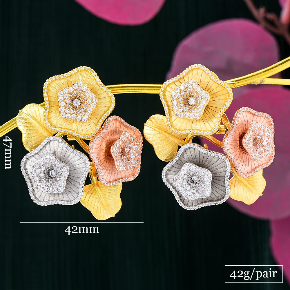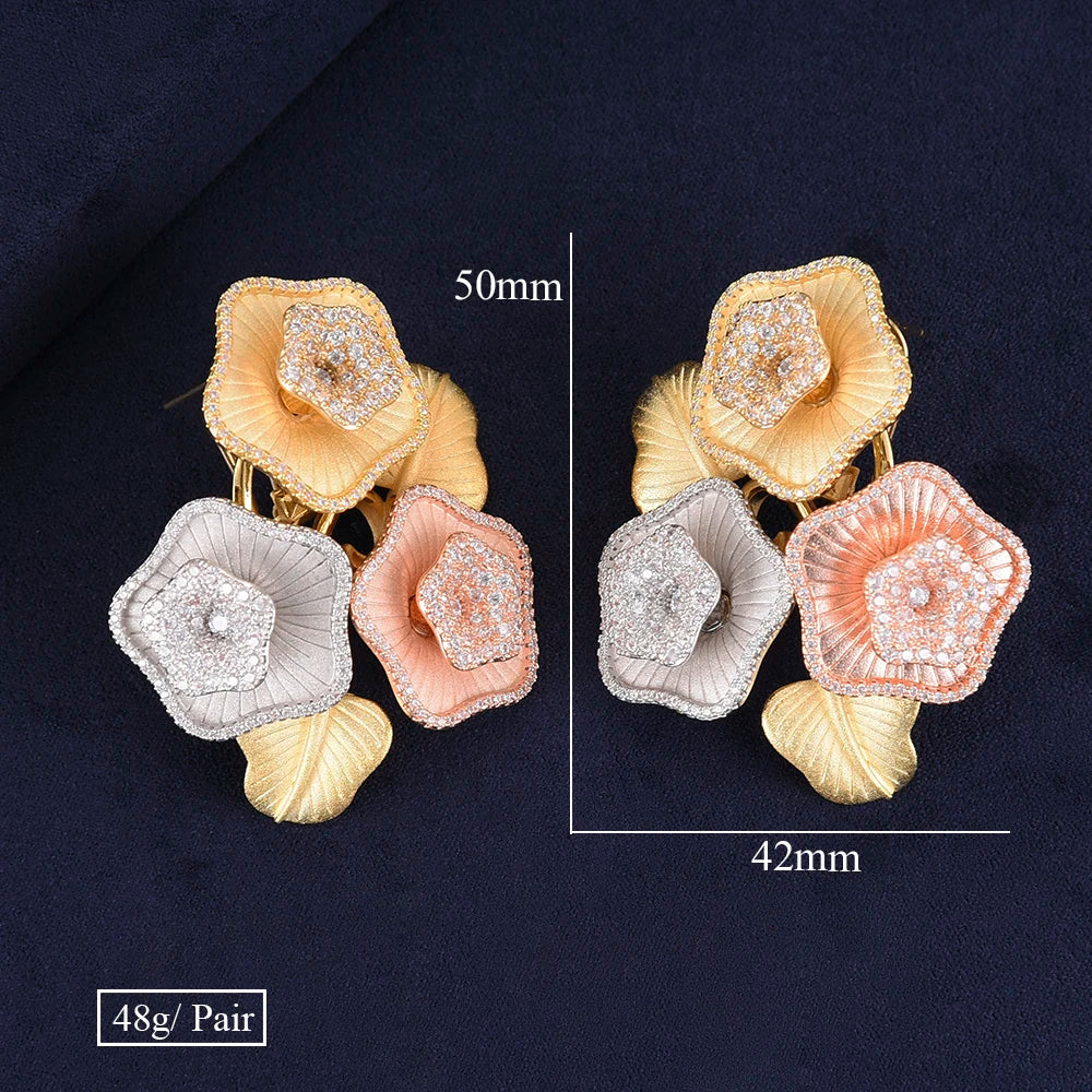 High Quality Luxury Full CZ Stone Big Stud Earrings For Bridal Wedding Women's