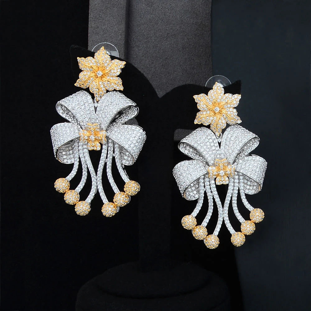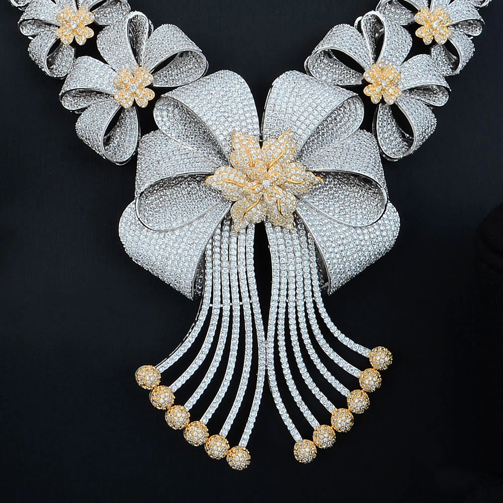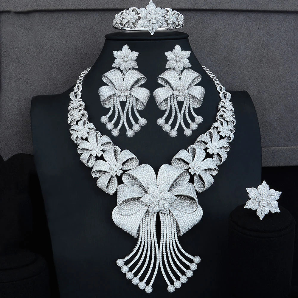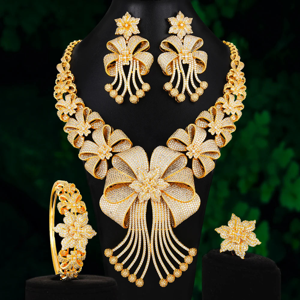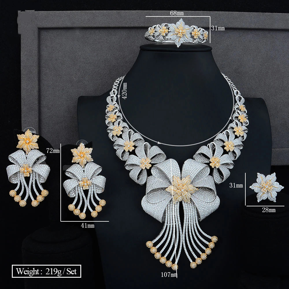 High Quality Original Luxury Romantic Blooming flowers Big Necklace Bracelet Rings Earrings Jewelry Set Bridal Wedding Party