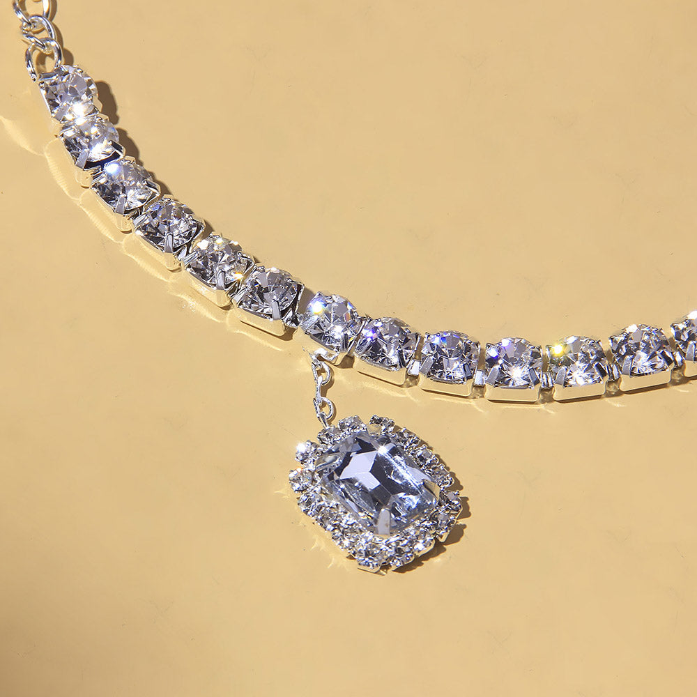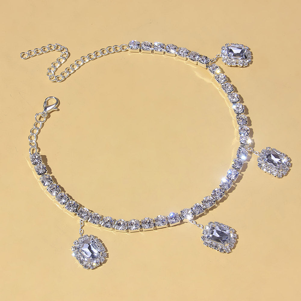 Anklets- Hip Hop Crystal Tennis Anklet Bracelet for Women Beach Fashion Rhinestone Square Leg Ankle Bracelet On The Leg Jewelry