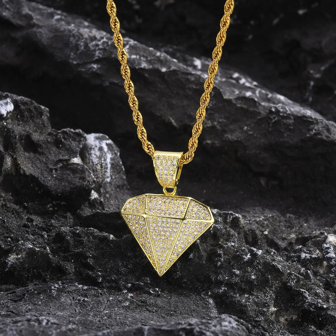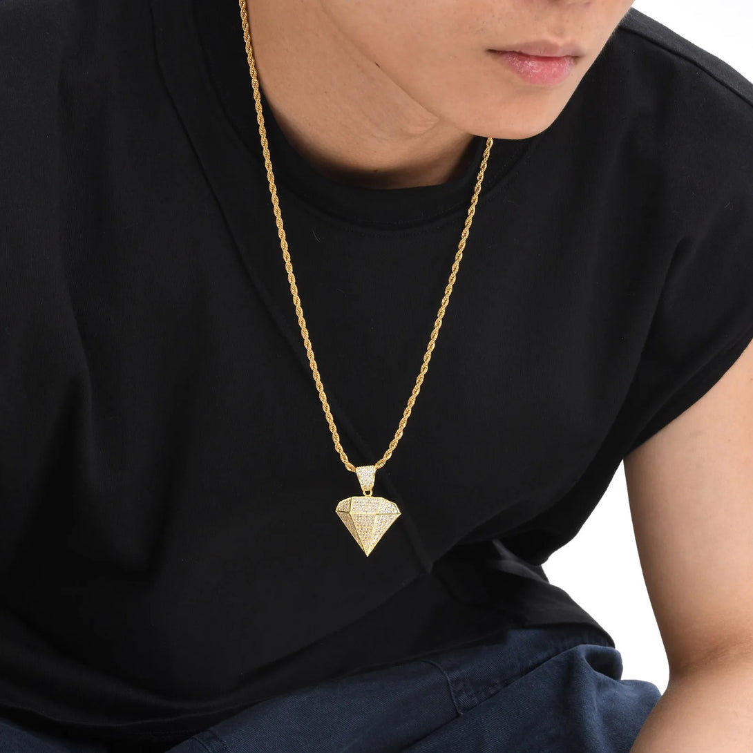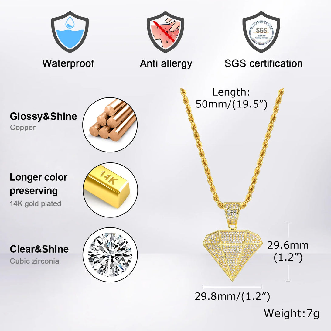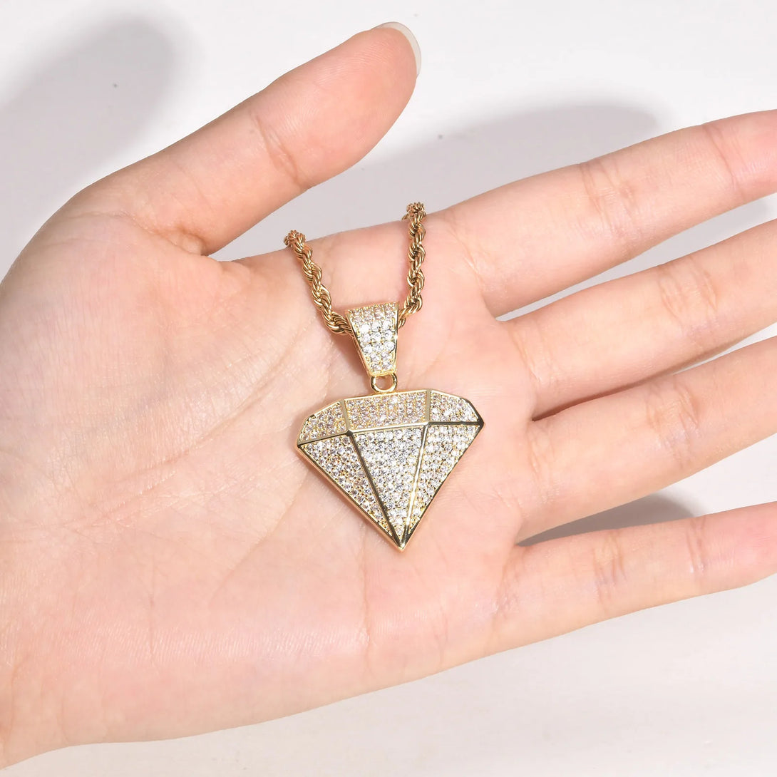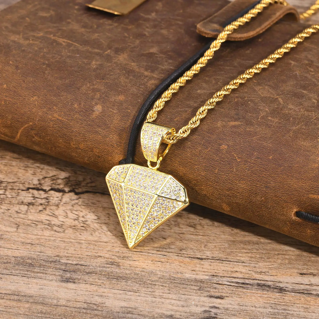 Hip-hop Diamond-shaped Necklaces for Men Boys,Full Inlay Rhinestones CZ Stones Pendant,Cool Mens Jewelry