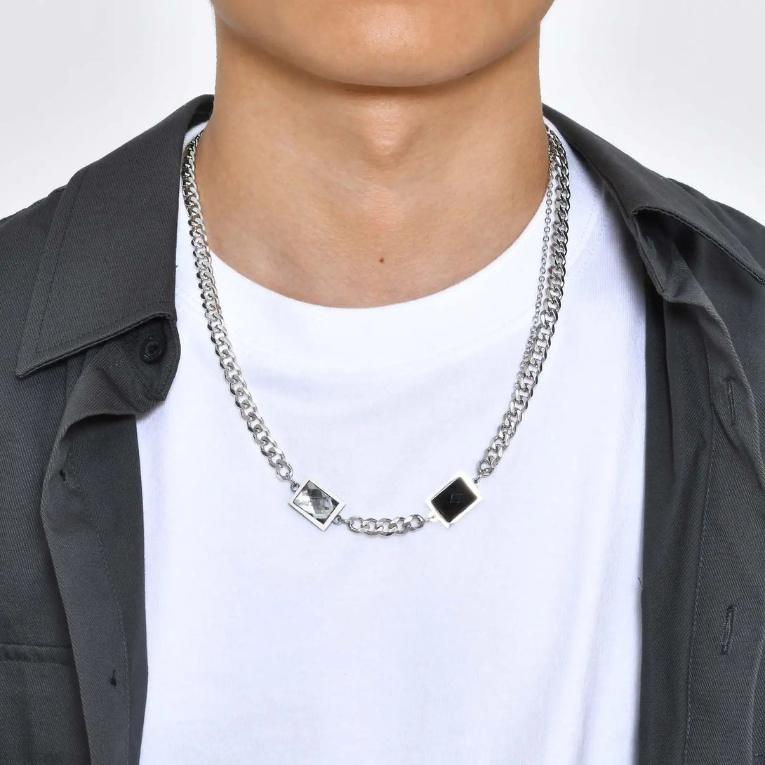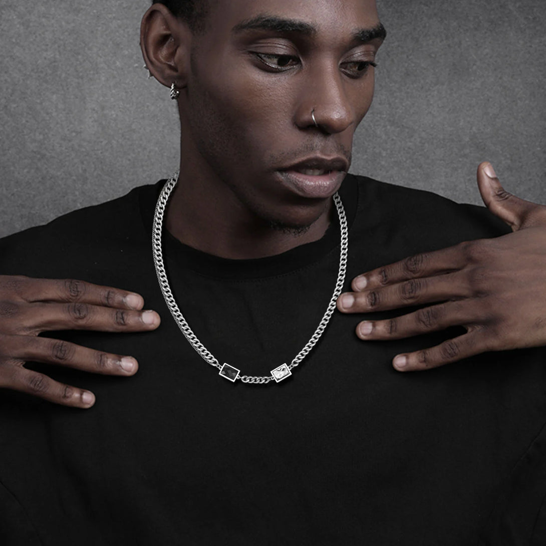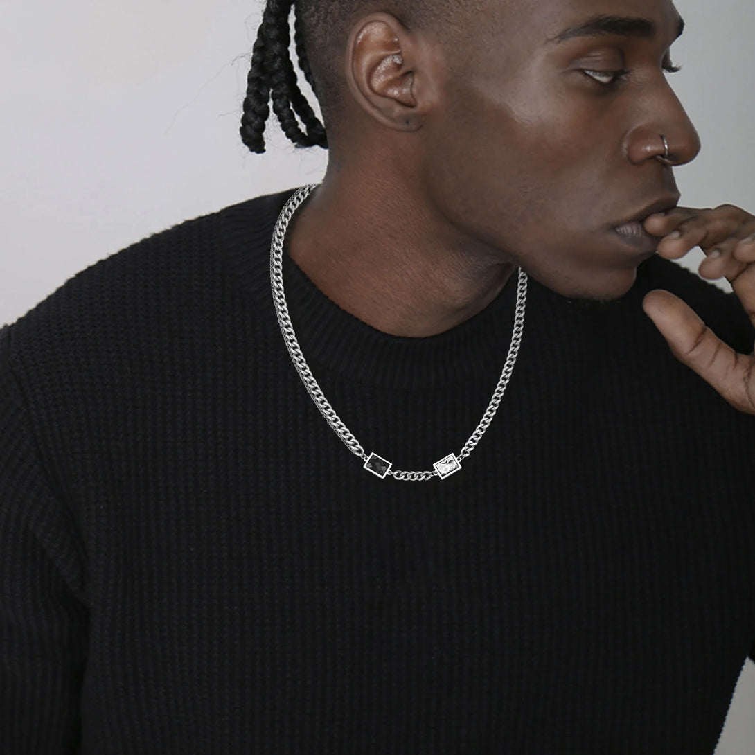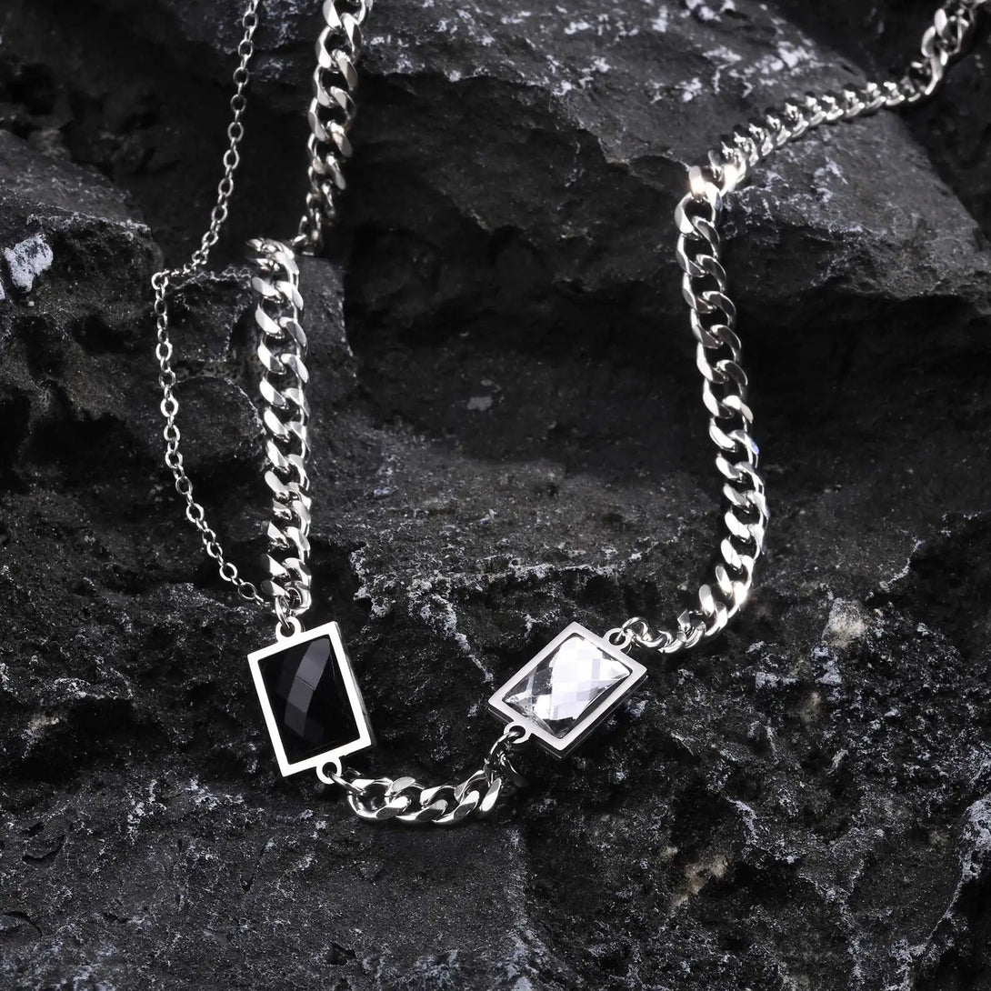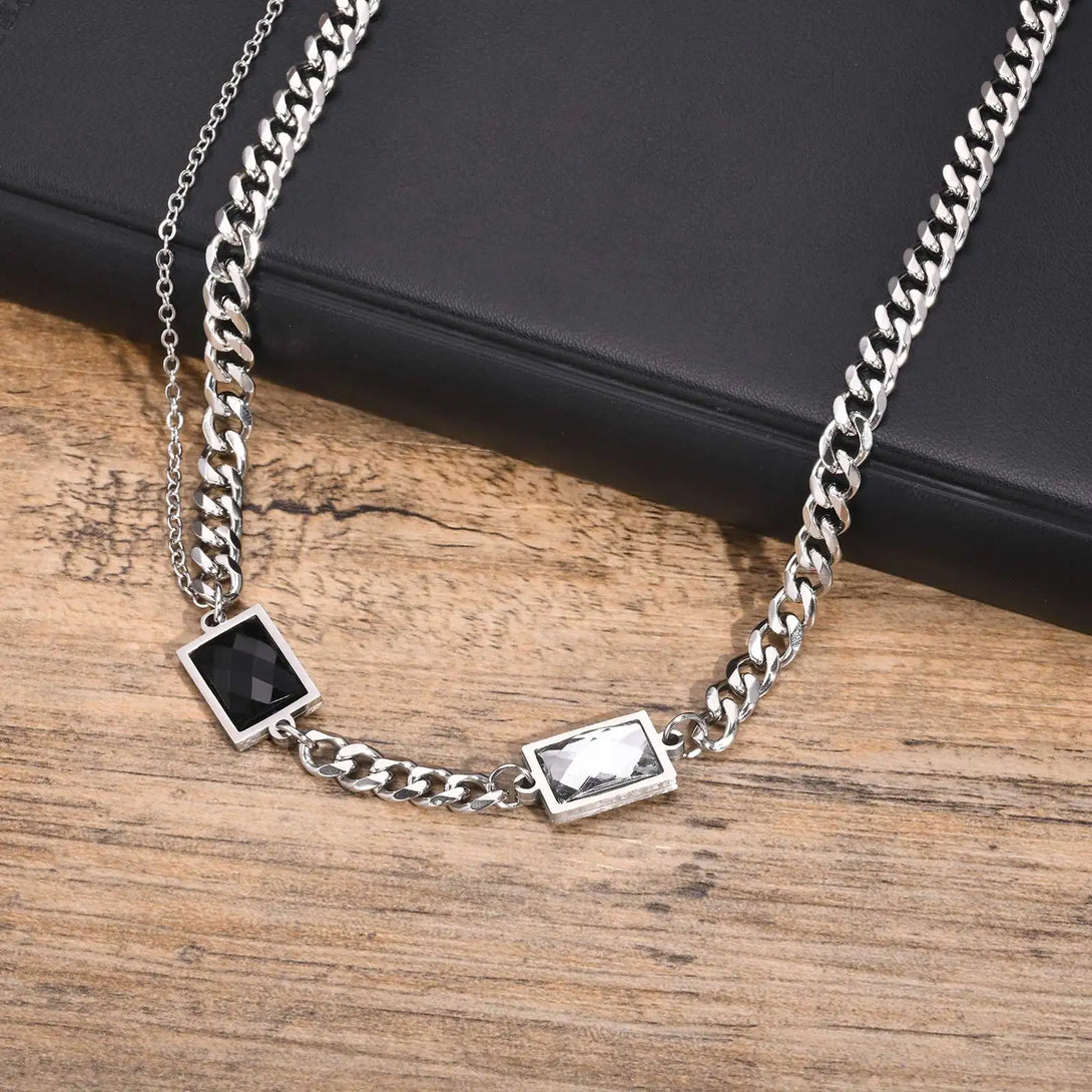 Hiphop Cuban Chain Necklaces for Men Boys,Black and White Square Glass Stone,Trendy Jewelry Gift to BBF