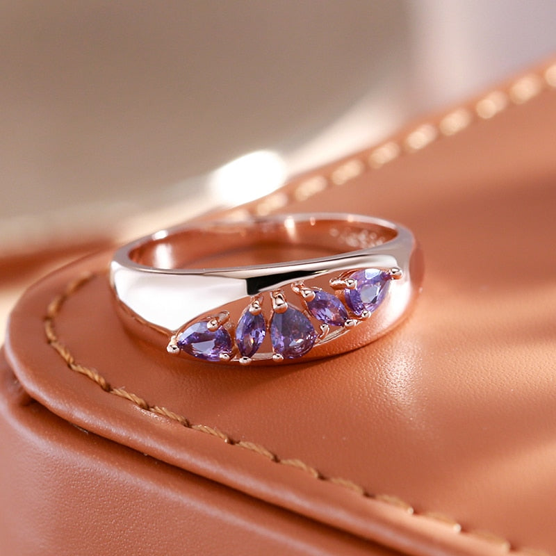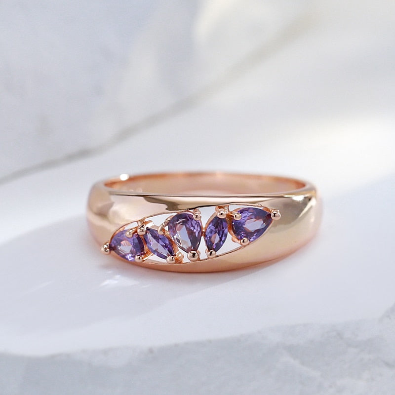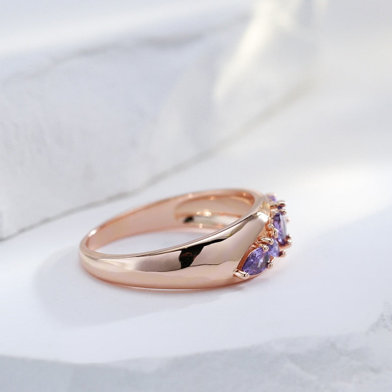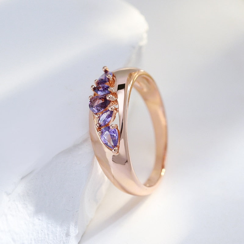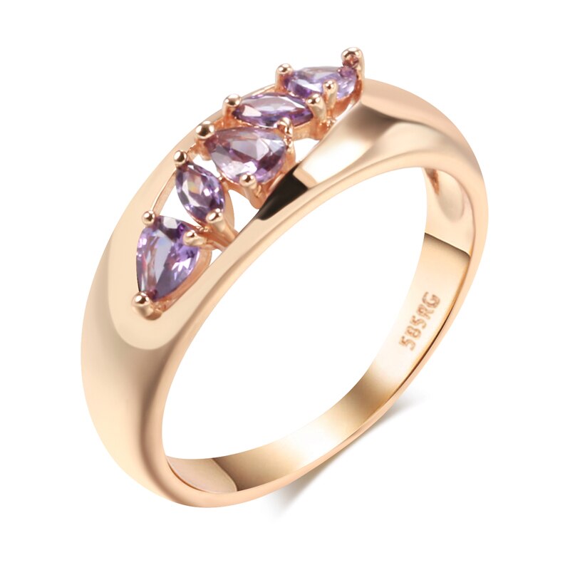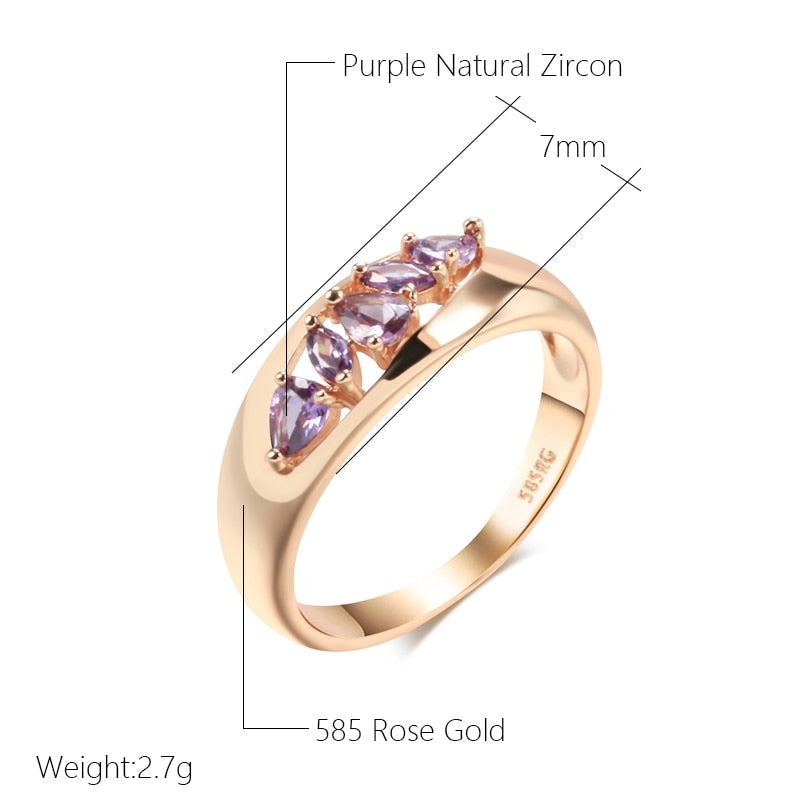 585 Gold Jewelry-Hollow Design Inlay Sparkling Purple Zircon Rings Luxury 585 Gold Color Trendy Jewelry Party Wedding Match Accessories