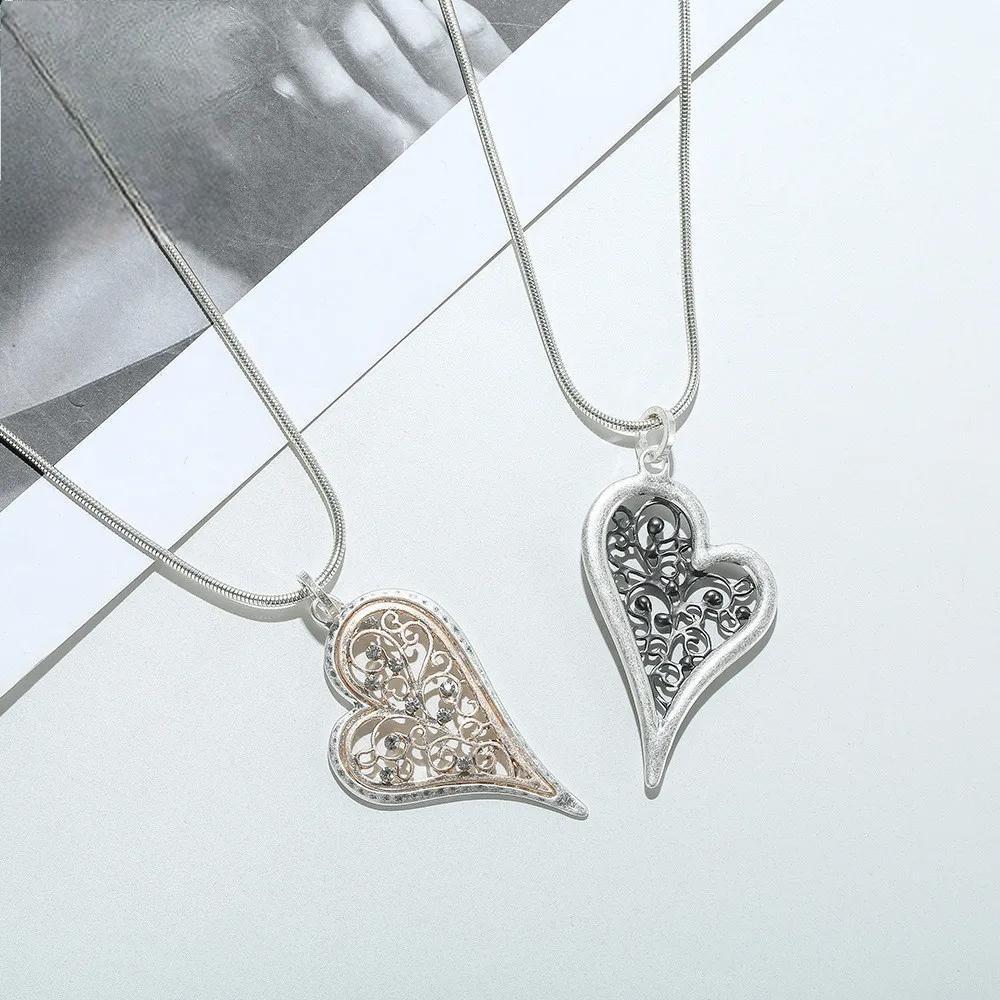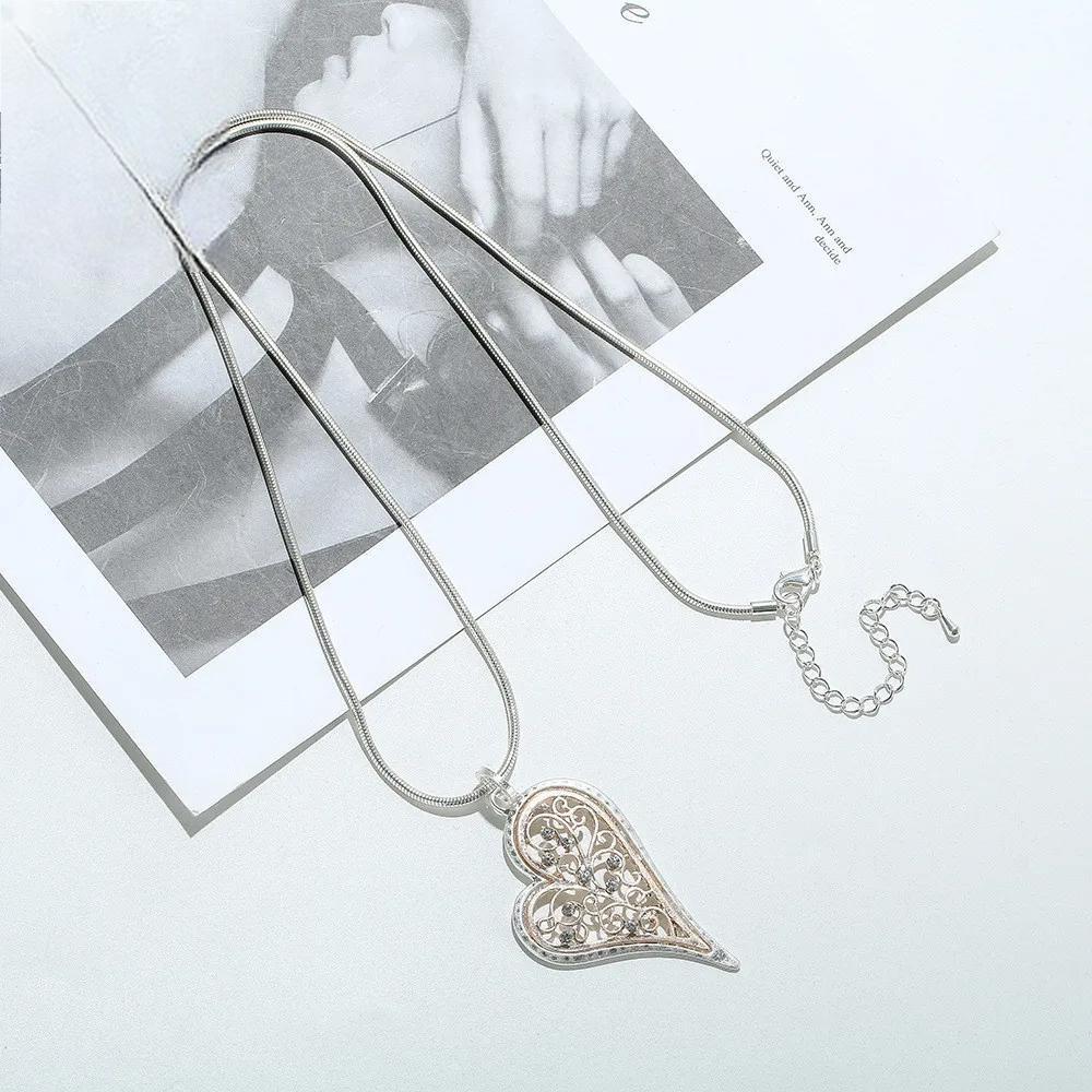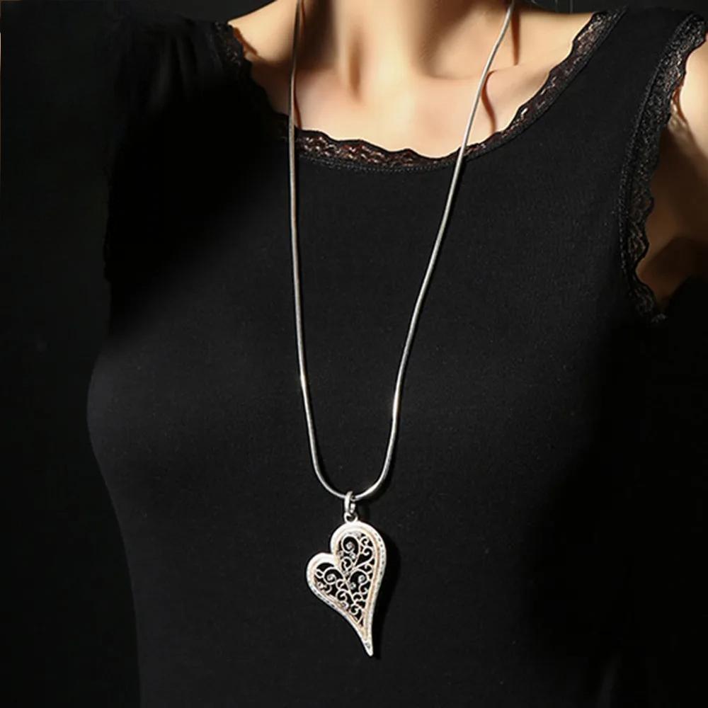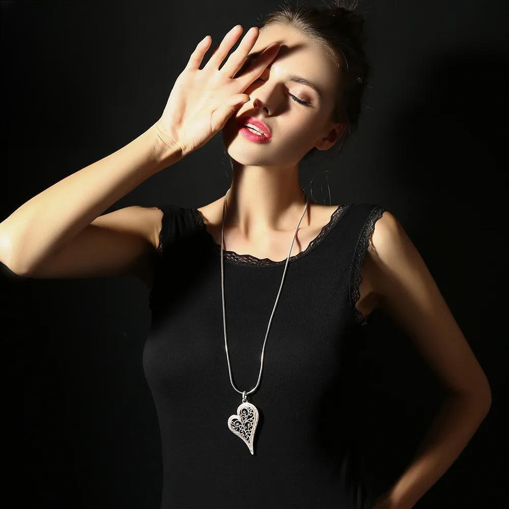 Hollow Heart Long Neck Pendants with Beads Chains Suspension Necklace Costume Jewelry for Women