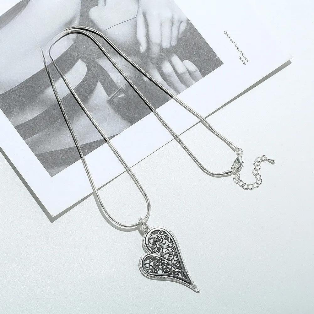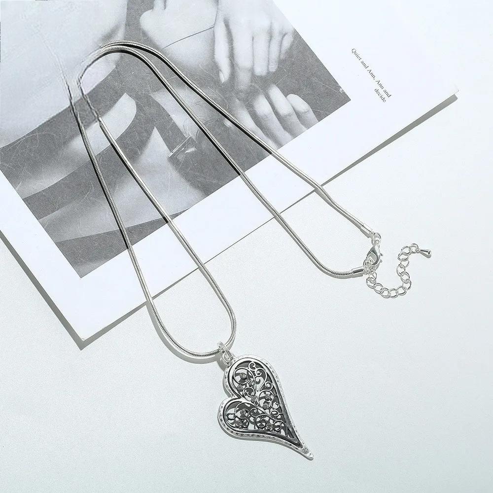 Hollow Heart Long Neck Pendants with Beads Chains Suspension Necklace Costume Jewelry for Women Vintage Aesthetic Accessories