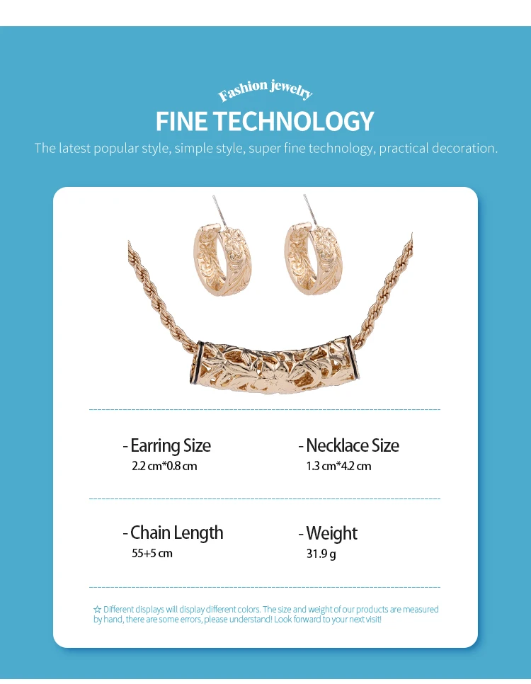 Newest Design Jewelry Sets Hollow out Gold Hawaiian Necklace Flower Gold Necklace Earrings Set for Women Girls